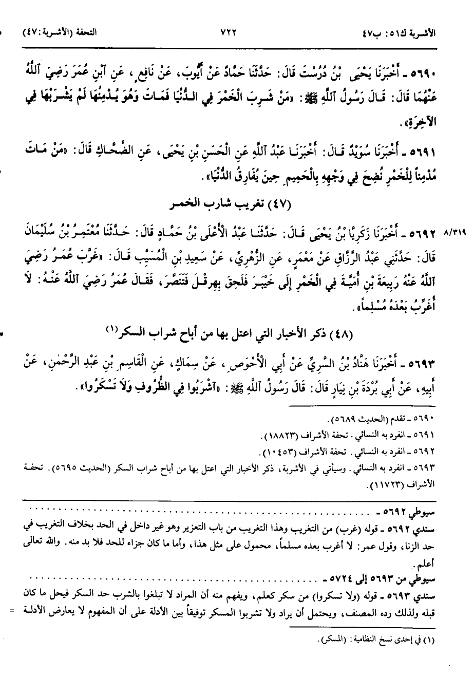 5690 - أَخْبَرَنَا يَحْيَى بْنُ دُرُسْتَ قَالَ حَدَّثَنَا حَمَّادٌ عَنْ أَيُّوبَ عَنْ نَافِعٍ عَنْ ابْنِ عُمَرَ رَضِيَ اللَّهُ عَنْهُمَا قَالَ قَالَ رَسُولُ اللَّهِ صَلَّى اللَّهُ عَلَيْهِ وَسَلَّمَ مَنْ شَرِبَ الْخَمْرَ فِي الدُّنْيَا فَمَاتَ وَهُوَ يُدْمِنُهَا لَمْ يَشْرَبْهَا فِي الْآخِرَةِ
