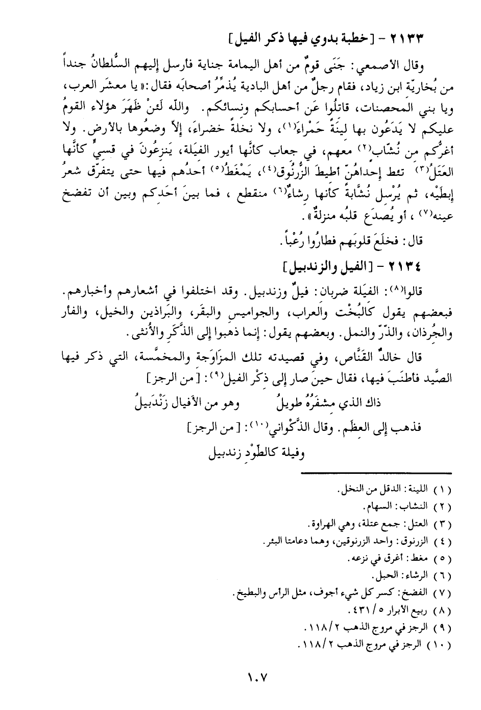 قال خالد القنّاص، وفي قصيدته تلك المزاوجة والمخمّسة، التي ذكر فيها الصّيد فأطنب فيها، فقال حين صار إلى ذكر الفيل «9» : [من الرجز]