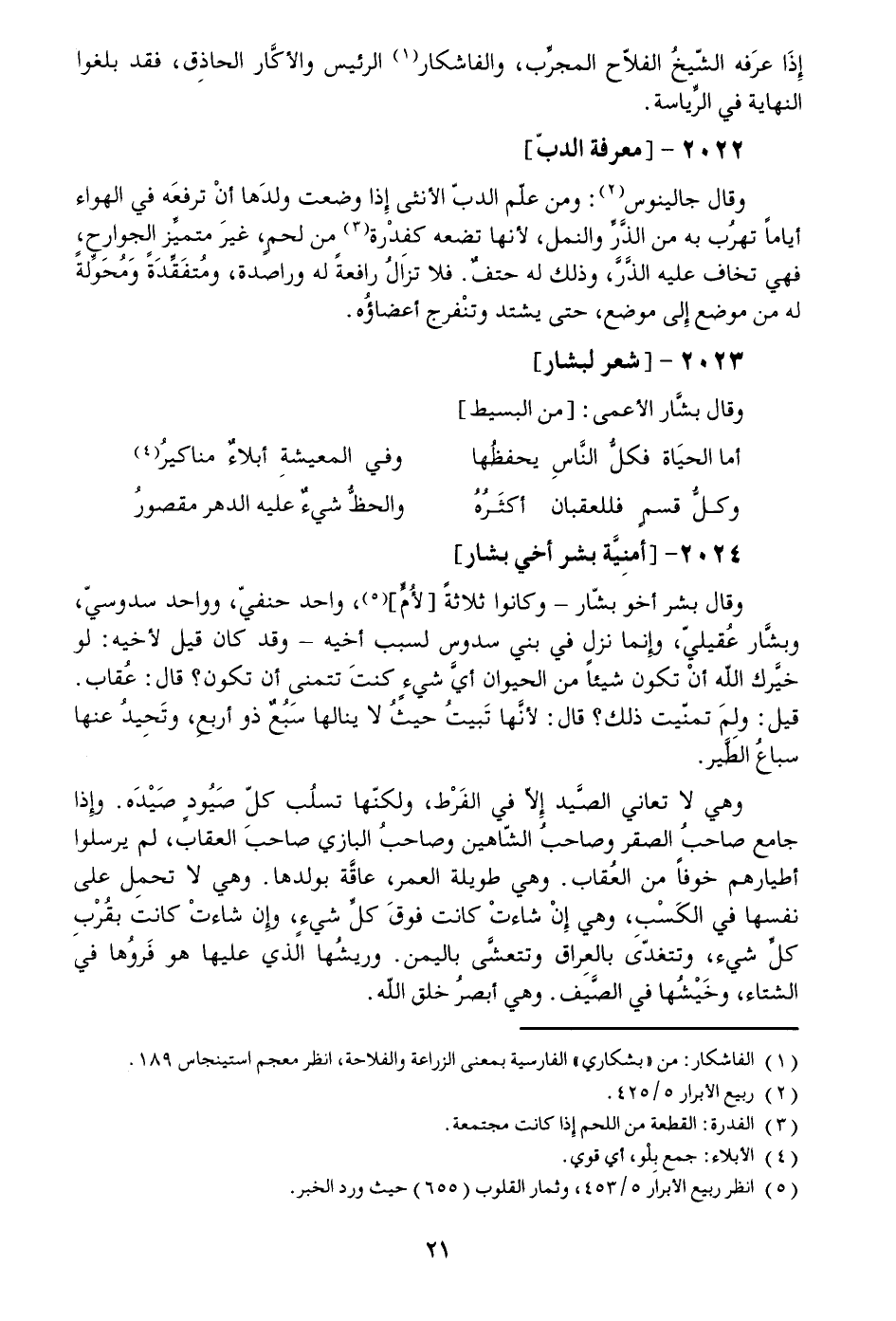 وقال بشر أخو بشّار- وكانوا ثلاثة [لأمّ] «5» ، واحد حنفيّ، وواحد سدوسيّ، وبشّار عقيليّ، وإنما نزل في بني سدوس لسبب أخيه- وقد كان قيل لأخيه: لو خيّرك الله أن تكون شيئا من الحيوان أيّ شيء كنت تتمنى أن تكون؟ قال: عقاب.