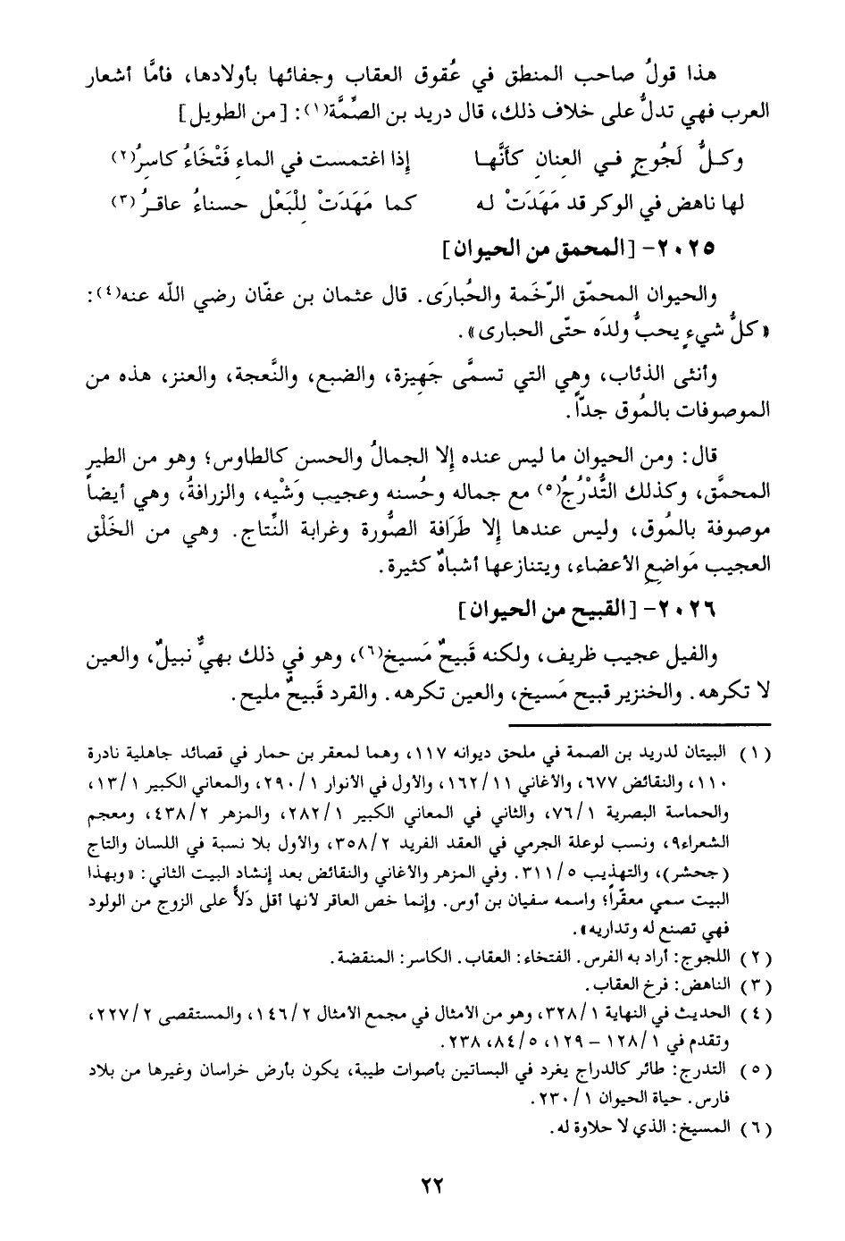 هذا قول صاحب المنطق في عقوق العقاب وجفائها بأولادها، فأمّا أشعار العرب فهي تدلّ على خلاف ذلك، قال دريد بن الصّمّة»