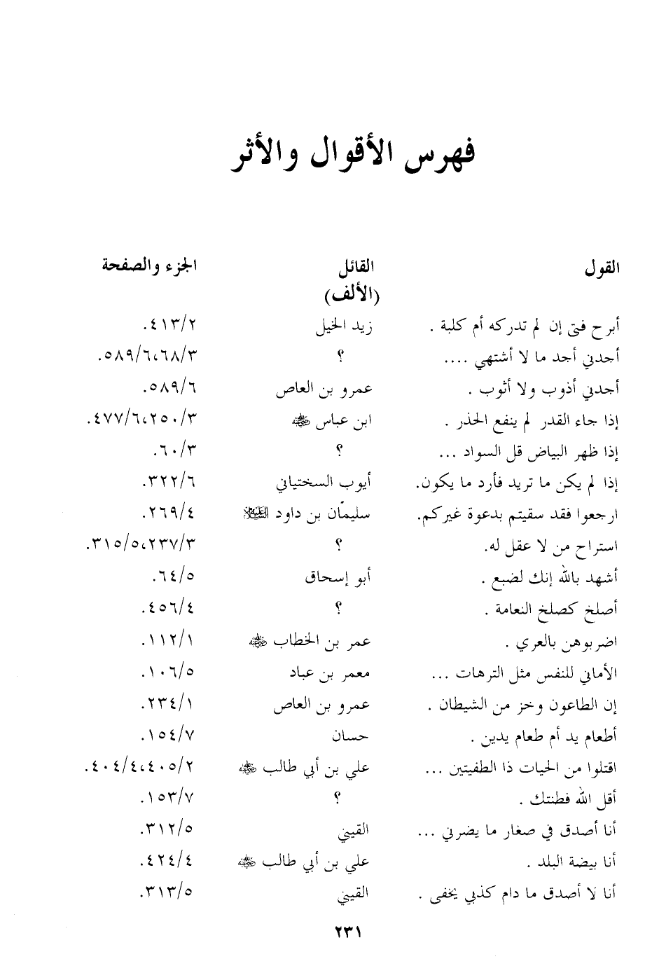 فهرس الأقوال والأثر