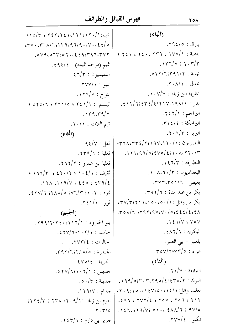 بكر بن وائل: 1/50، 150، 211؛ 3/37، 48؛ 4/444؛ 5/70، 97، 292؛ 6/358، 357؛ 7/146.
