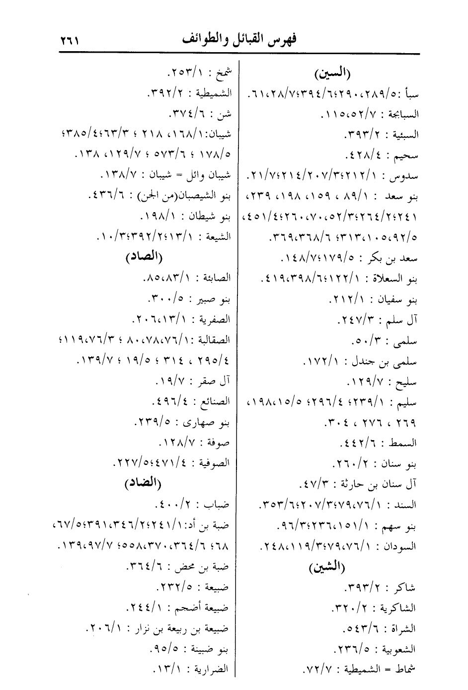 بنو سعد: 1/89، 159، 198، 239، 241؛ 2/264؛ 3/52، 70، 260؛ 4/451، 5/92، 105، 313؛ 6/368، 369.