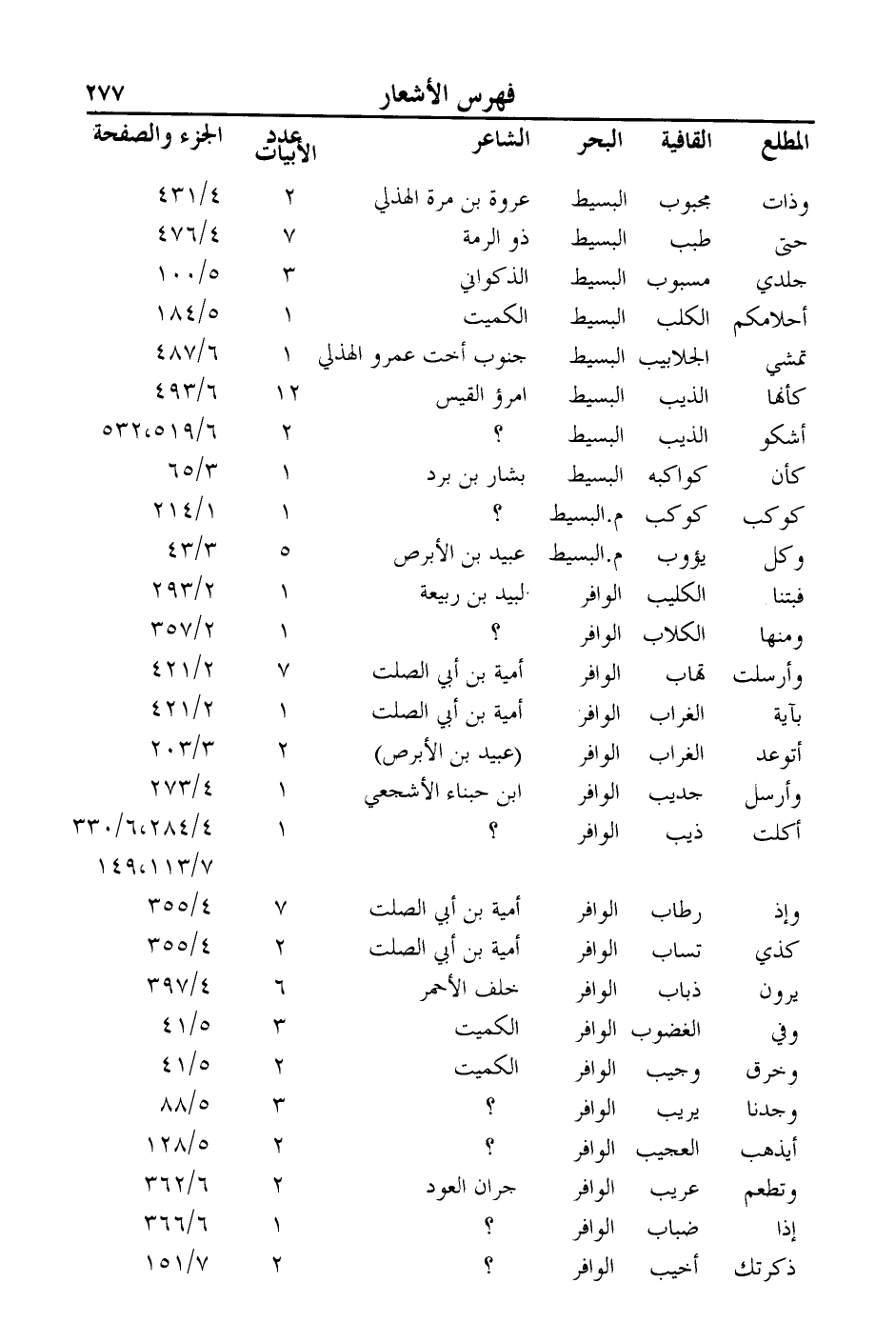 وجدنا: يريب: الوافر:؟: 3: 5/88