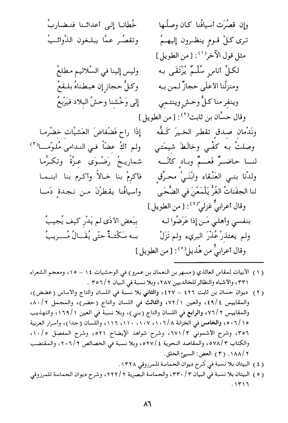 لنا الجفنات الغرّ يلمعن في الضّحى ... وأسيافنا يقطرن من نجدة دما
