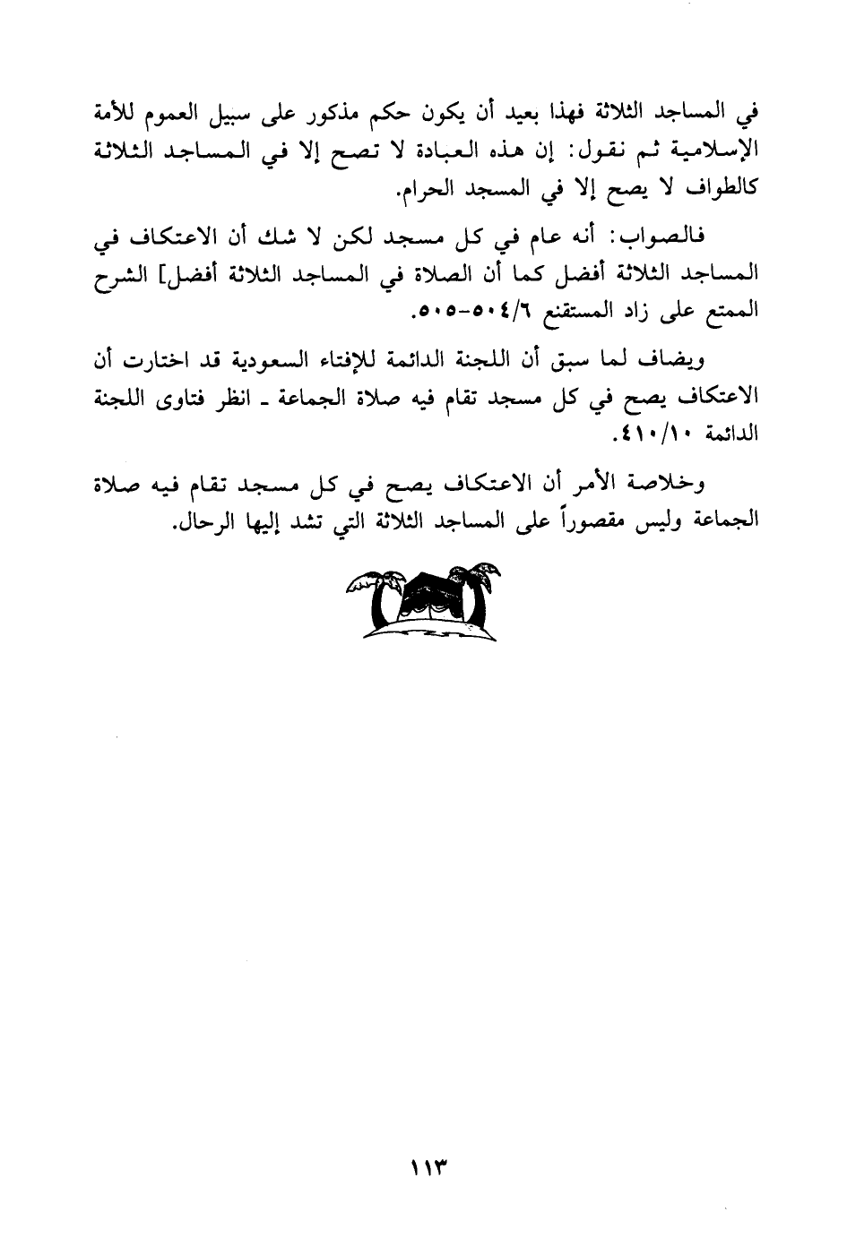في المساجد الثلاثة فهذا بعيد أن يكون حكم مذكور على سبيل العموم للأمة الإسلامية ثم نقول: إن هذه العبادة لا تصح إلا في المساجد الثلاثة كالطواف لا يصح إلا في المسجد الحرام.