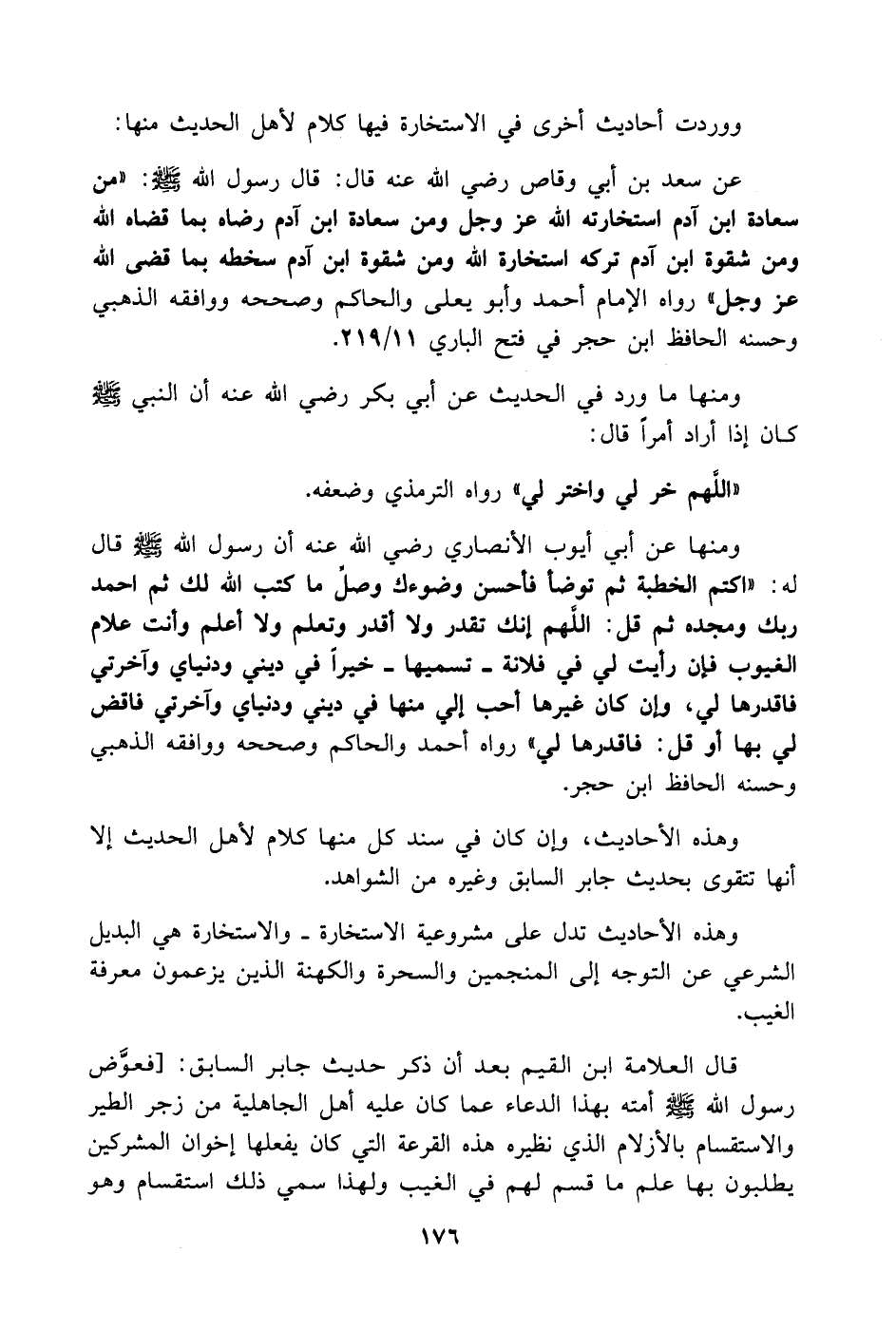 عن سعد بن أبي وقاص - رضي الله عنه - قال: قال رسول الله - صَلَّى اللهُ عَلَيْهِ وَسَلَّمَ -: (من سعادة ابن آدم استخارته الله عز وجل ومن سعادة ابن آدم رضاه بما قضاه الله ومن شقوة ابن آدم تركه استخارة الله ومن شقوة ابن آدم سخطه بما قضى الله عز وجل) رواه الإمام أحمد وأبو يعلى والحاكم وصححه ووافقه الذهبي وحسنه الحافظ ابن حجر في فتح الباري 11/ 219.