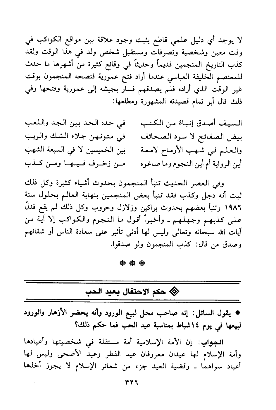 وفي العصر الحديث تنبأ المنجمون بحدوث أشياء كثيرة وكل ذلك ثبت أنه دجل وكذب فقد تنبأ بعض المنجمين بنهاية العالم بحلول سنة 1986 وتنبأ بعضهم بحدوث براكين وزلازل وحروب وكل ذلك لم يقع فدلّ على كذبهم وجهلهم. وأخيراً أقول ما النجوم والكواكب إلا آية من آيات الله سبحانه وتعالى وليس لها أدنى تأثير على سعادة الناس أو شقائهم وصدق من قال: كذب المنجمون ولو صدقوا).