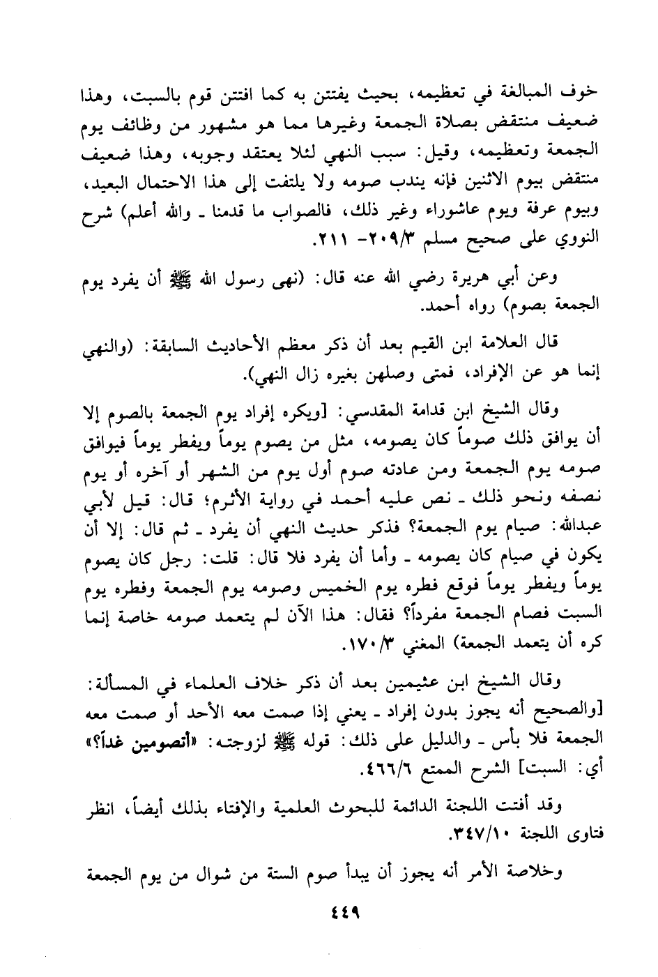 وعن أبي هريرة - رضي الله عنه - قال: (نهى رسول الله - صَلَّى اللهُ عَلَيْهِ وَسَلَّمَ - أن يفرد يوم الجمعة بصوم) رواه أحمد.