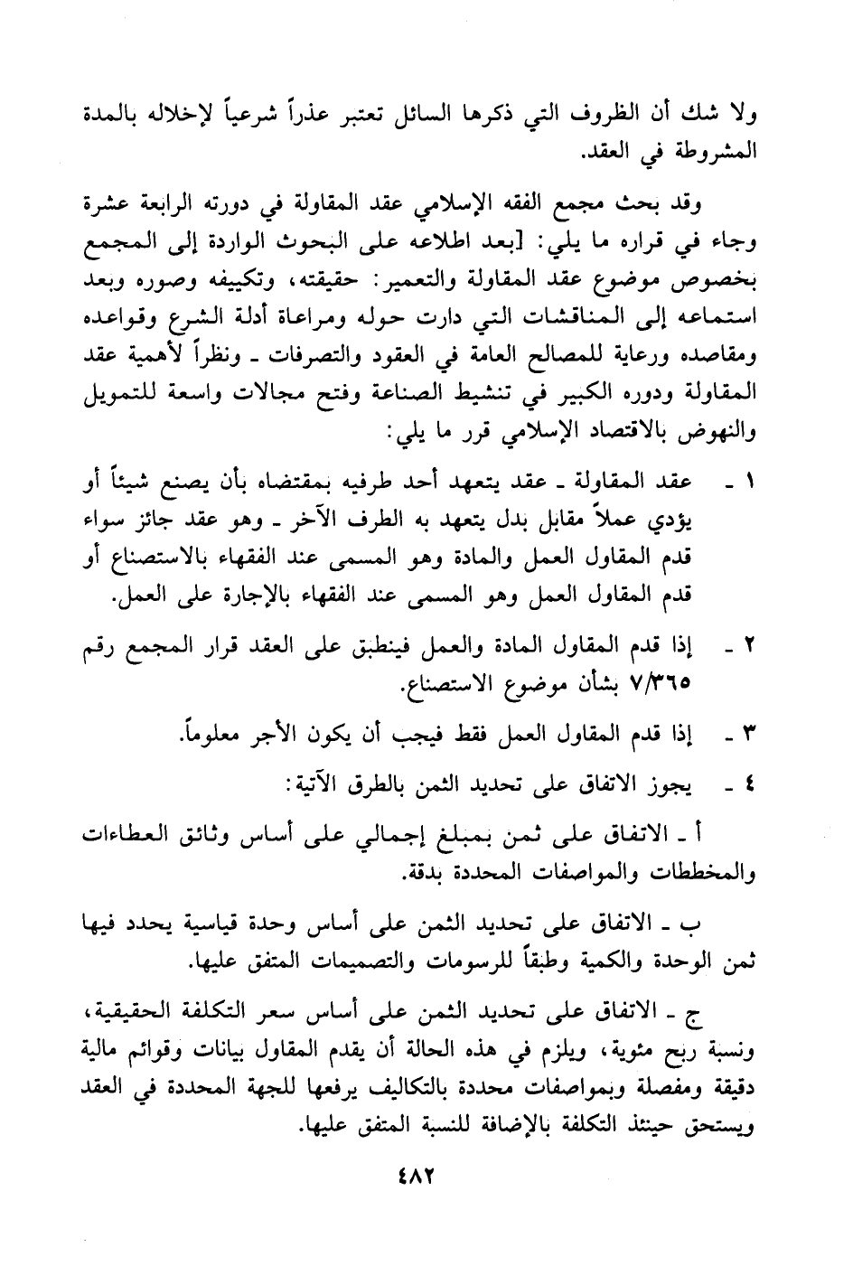 إذا قدم المقاول المادة والعمل فينطبق على العقد قرار المجمع رقم 365/ 7 بشأن موضوع الاستصناع.