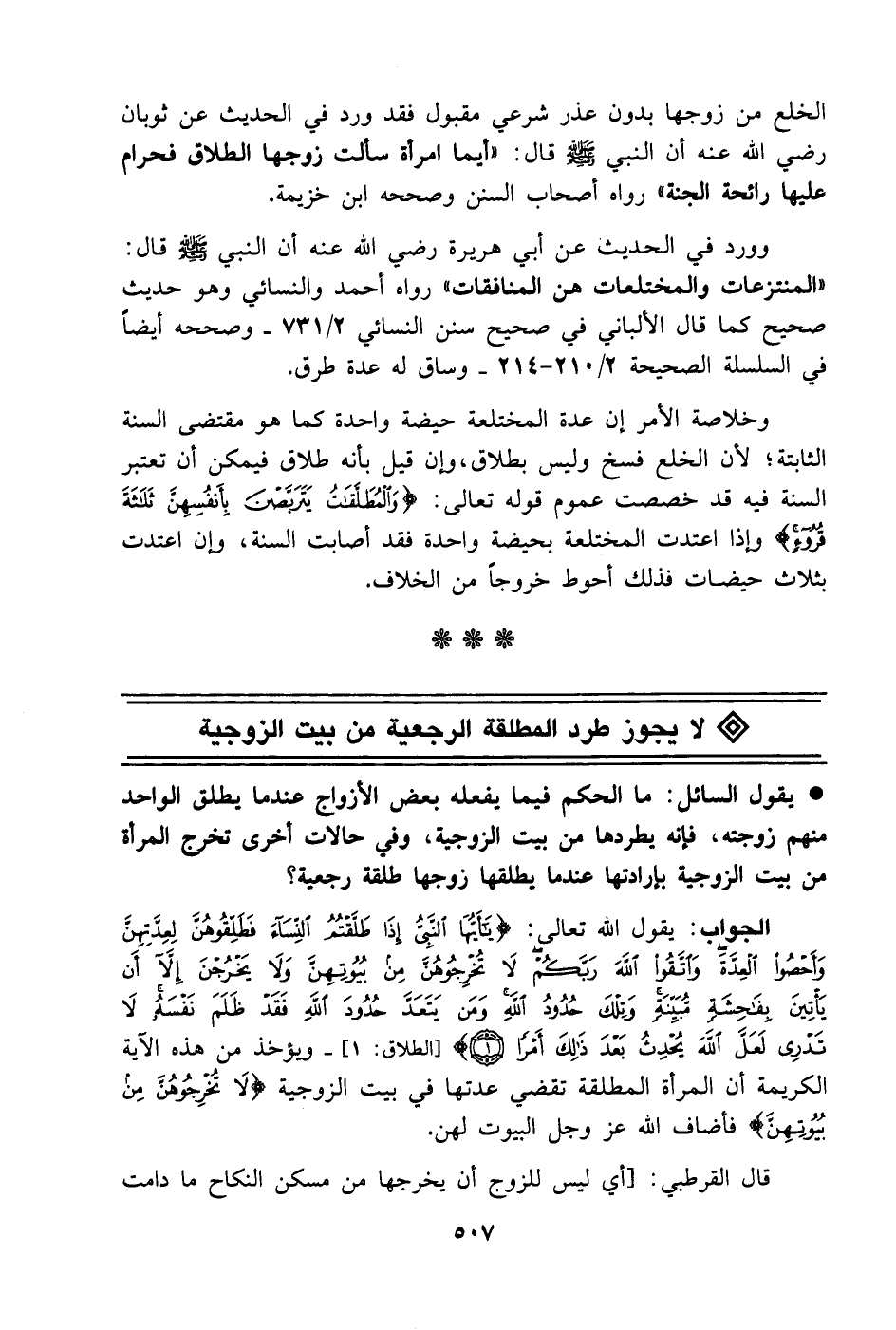 قال القرطبي: [أي ليس للزوج أن يخرجها من مسكن النكاح ما دامت