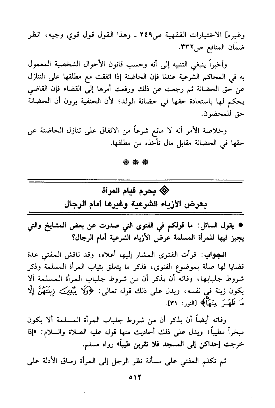 يقول السائل: ما قولكم في الفتوى التي صدرت عن بعض المشايخ والتي يجيز فيها للمرأة المسلمة عرض الأزياء الشرعية أمام الرجال؟