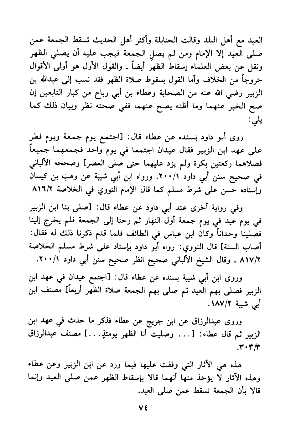 هذه هي الآثار التي وقفت عليها فيما ورد عن ابن الزبير وعن عطاء وهذه الآثار لا يؤخذ منها أنهما قالا بإسقاط الظهر عمن صلى العيد وإنما قالا بأن الجمعة تسقط عمن صلى العيد.
