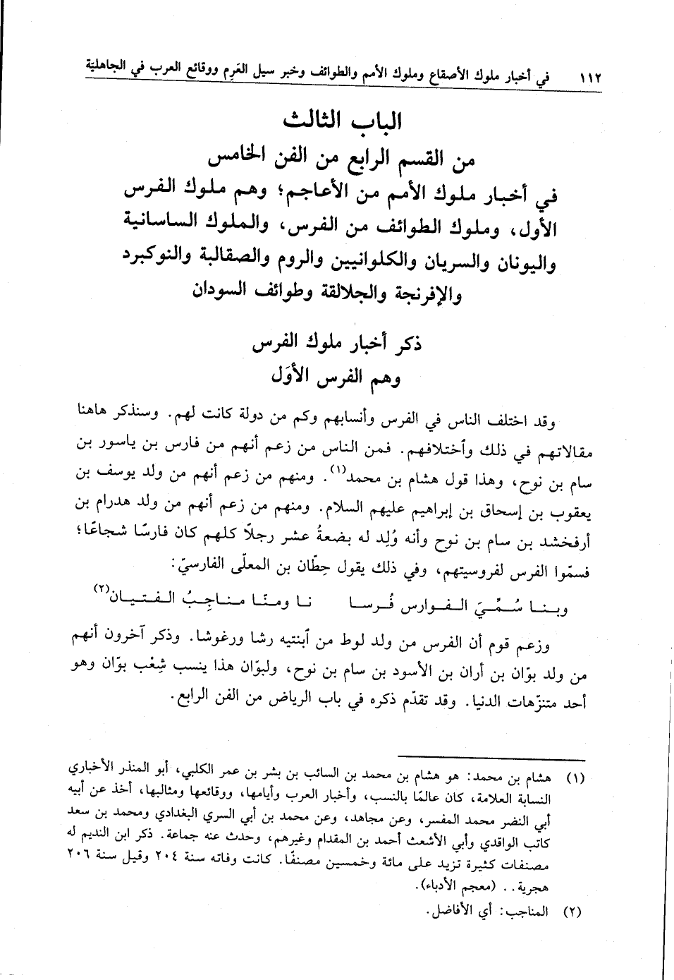 الباب الثالث من القسم الرابع من الفن الخامس في أخبار ملوك الأمم من الأعاجم وهم ملوك الفرس الأول ، وملوك الطوائف من الفرس ، والملوك الساسانية واليونان والسريان والكلوانين والروم والصقالبة والنوكبرد والإفرنجة والجلالقة وطوائف السودان