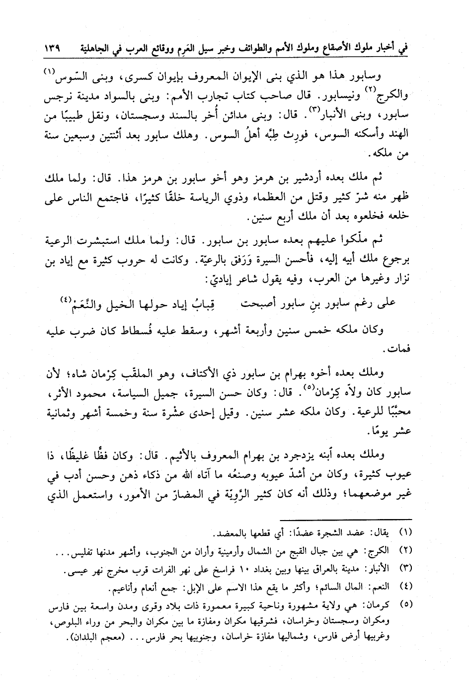 على رغم سابور بن سابور أصبحت . . . قباب إياد حولها الخيل والنعم