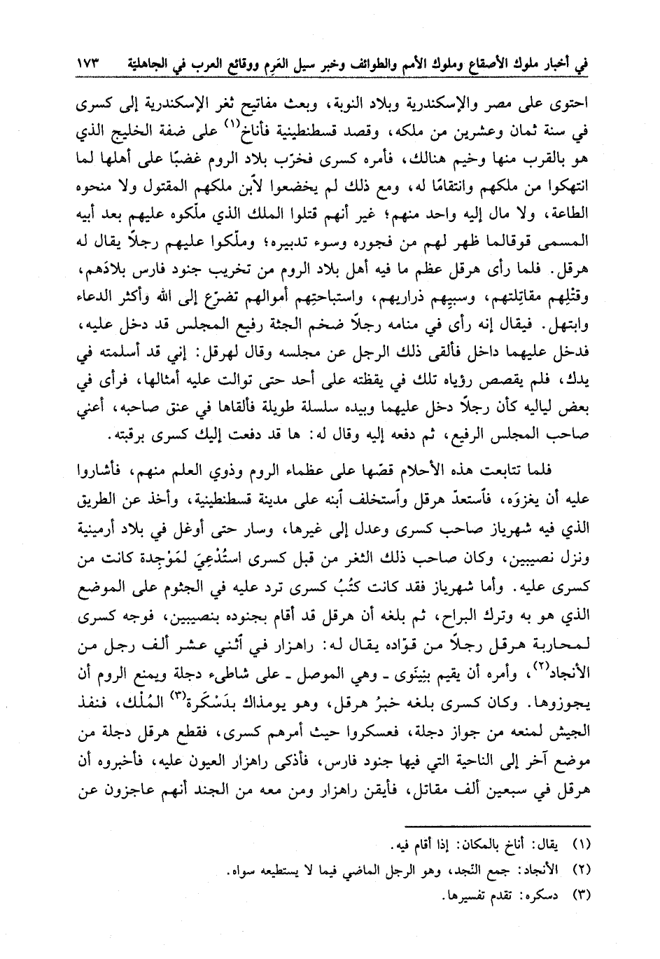 احتوى على مصر والإسكندرية وبلاد النوبة ، وبعث مفاتيح ثغر الإسكندرية إلى كسرى في سنة ثمان وعشرين من ملكه ، وقصد قسطنطينية فأناخ على ضفة الخليج الذي هو بالقرب منها وخيم هنالك ، فأمره كسرى فجرب بلاد الروم غضباً على أهلها لما انتهكوا من ملكهم وانتقاماً له ، ومع ذلك لم يخضعوا لابن ملكهم المقتول ولا منحوه الطاعة ، ولا مال إليه واحد منهم ؛ غير أنهم قتلوا الملك الذي ملكوه عليهم بعد أبيه المسمى قوقا لما ظهر لهم من فجوره وسوء تدبيره ؛ وملكوا عليهم رجلاً يقال له هرقل . فلما رأى هرقل عظم ما فيه أهل بلاد الروم من تخريب جنود فارس بلادهم ، وقتلهم مقاتليهم ، وسبيهم ذراريهم ، واستباحتهم أموالهم تضرع إلى الله وأكثر الدعاء وابتهل . فيقال إنه رأى في منامه رجلاً ضخم الجثة رفيع المجلس قد دخل عليهما داخل فألقى ذلك الرجل عن مجلسه وقال لهرقل : إني قد أسلمته في يدك ، فلم يقصص رؤياه في يقظته على أحد حتى توالت عليه أمثالها ، فرأى في بعض لياليه كأن رجلاً دخل عليهما وبيده سلسلة طويلة فألقاها في عنق صاحبه ، أعني صاحب المجلس الرفيع ، ثم دفعه إليه وقال له : ها قد دفعت إليك كسرى برقبته .