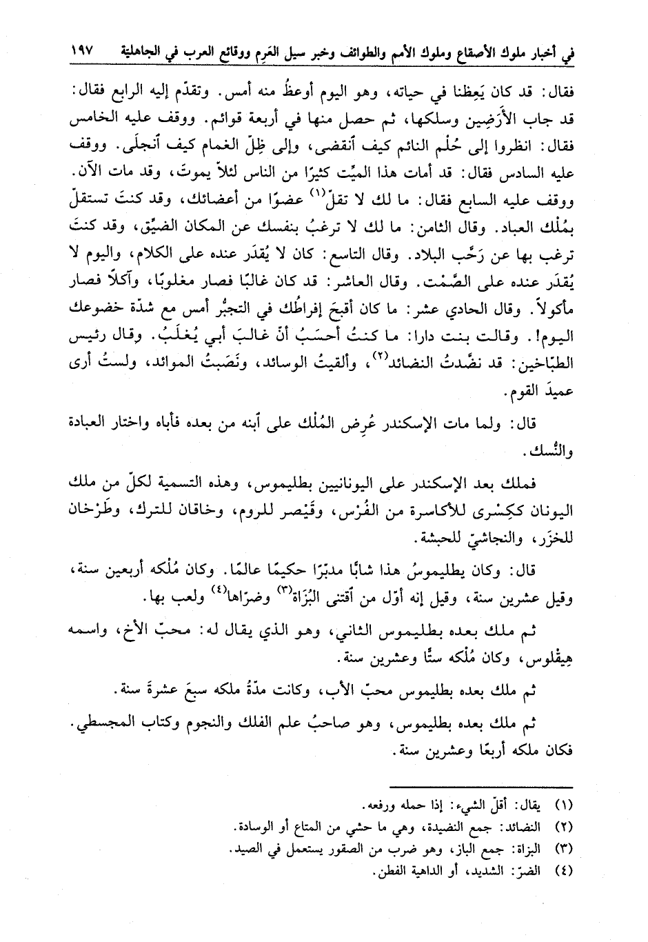 فملك بعد الإسكندر على اليونانيين بطليموس ، وهذه التسمية لكل من ملك اليونان ككسرى للأكاسرة من الفرس ، وقيصر للروم ، وخاقان للترك ، وطرخان للخزر ، والنجاشي للحبشة .