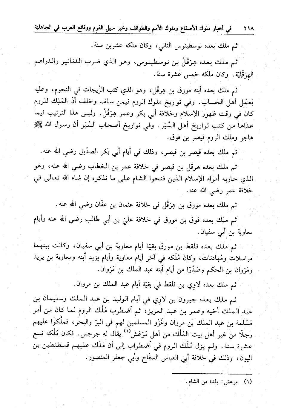 ثم ملك بعده ابنه مورق بن هرقل ، وهو الذي كتب الزيجات في النجوم ، وعليه يعمل أهل الحساب . وفي تواريخ ملوك الروم فيمن سلف وخلف أن الملك للروم كان في وقت ظهور الإسلام وخلافة أبي يكر وعمر هرقل . وليس هذا الترتيب فيما عداها من كتب تواريخ أهل السير . وفي تواريخ أصحاب السير أن رسول الله ( صلى الله عليه وسلم ) هاجر وملك الروم قيصر بن فوق .