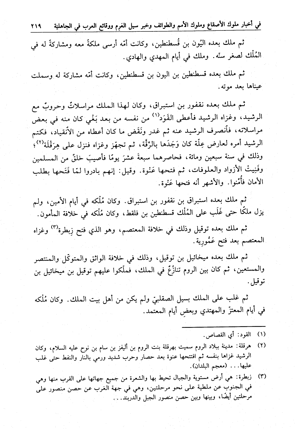 ثم ملك بعده نقفور بن استبراق ، وكان لهذا الملك مراسلات وحروب مع الرشيد ، وغزاه الرشيد فأعطى القود من نفسه من بعد بغي كان منه في بعض مراسلاته ، فانصرف الرشيد عنه ثم غدر ونقض ما كان أعطاه من الانقياد ، فكتم الرشيد أمره لعارض علة كان وجدها بالرقة ، ثم تجهز وغزاه فنزل على هرقلة ؛ وذلك في سنة سبعين ومائة ، فحاصرهما سبعة عشر يوماً فأصيب خلق من المسلمين وفنيت الأزواد والعلوقات ، ثم فتحها عنوة . وقيل : إنهم بادروا لما فتحها بطلب الأمان فأمنوا . والأشهر أنه فتحها عنوة .