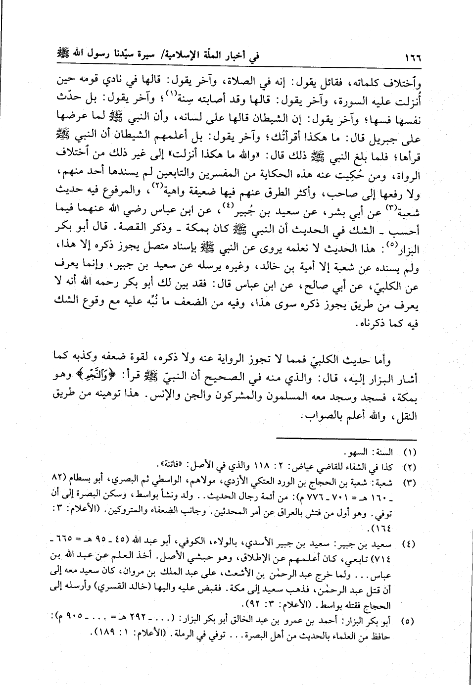 واختلاف كلماته ، فقائل يقول : انه في الصلاة ، وآخر يقول قالها في نادي قومه حين انزلت عيلان لسورة ، وآخر يقول : قالها وقد أصابته سنة ؛ وآخر يقول : بل حدث نفسه فيها ؛ وآخر يقول : إن الشيطان قالها على لسانه ، وأن النبي ( صلى الله عليه وسلم ) لما عرضها على جبريل قال : ما هكذا أقرأتك ؛ وآخر يقول : بل أعلمهم الشيطان أن النبي ( صلى الله عليه وسلم ) قرأها ؛ فلما بلغ النبي ( صلى الله عليه وسلم ) ذلك قال : والله ما هكذا أنزلت إلى غير ذلك من اختلاف الرواة ، ومن حكيت عنه هذه الحكاية من المفسرين والتابعين لم يسندها أحد منهم ، ولا رفعها إلى صاحب ، وأكثر الطرق عنهم فيها ضعيفة واهية ، والمرفوع فيه حديث شعبة عن أبي بشر ، عن سعيد بن جبير ، عن ابن عباس رضي الله عنهما فيما أحسب - الشك في الحديث ان النبي ( صلى الله عليه وسلم ) كان بمكة - وذكر القصة . قال أبو بكر البزار : هذا الحديث لا نعلمه يروى عن النبي ( صلى الله عليه وسلم ) بإسناد متصل يجوز ذكره إلا هذا ولم يسنده عن شعبة إلا أمية بن خالد ، وغيره يرسله عن سعيد بن جبير ، وانما يعرف عن الكلبي ، عن أبي صالح ، عن ابن عباس قال : فقد بين لك أبو بكر رحمه الله انه لا يعرف من طريق يجوز ذكره سوى هذا وفيه من الضعف ما نبه عليه مع وقوع الشك فيه كما ذكرناه .