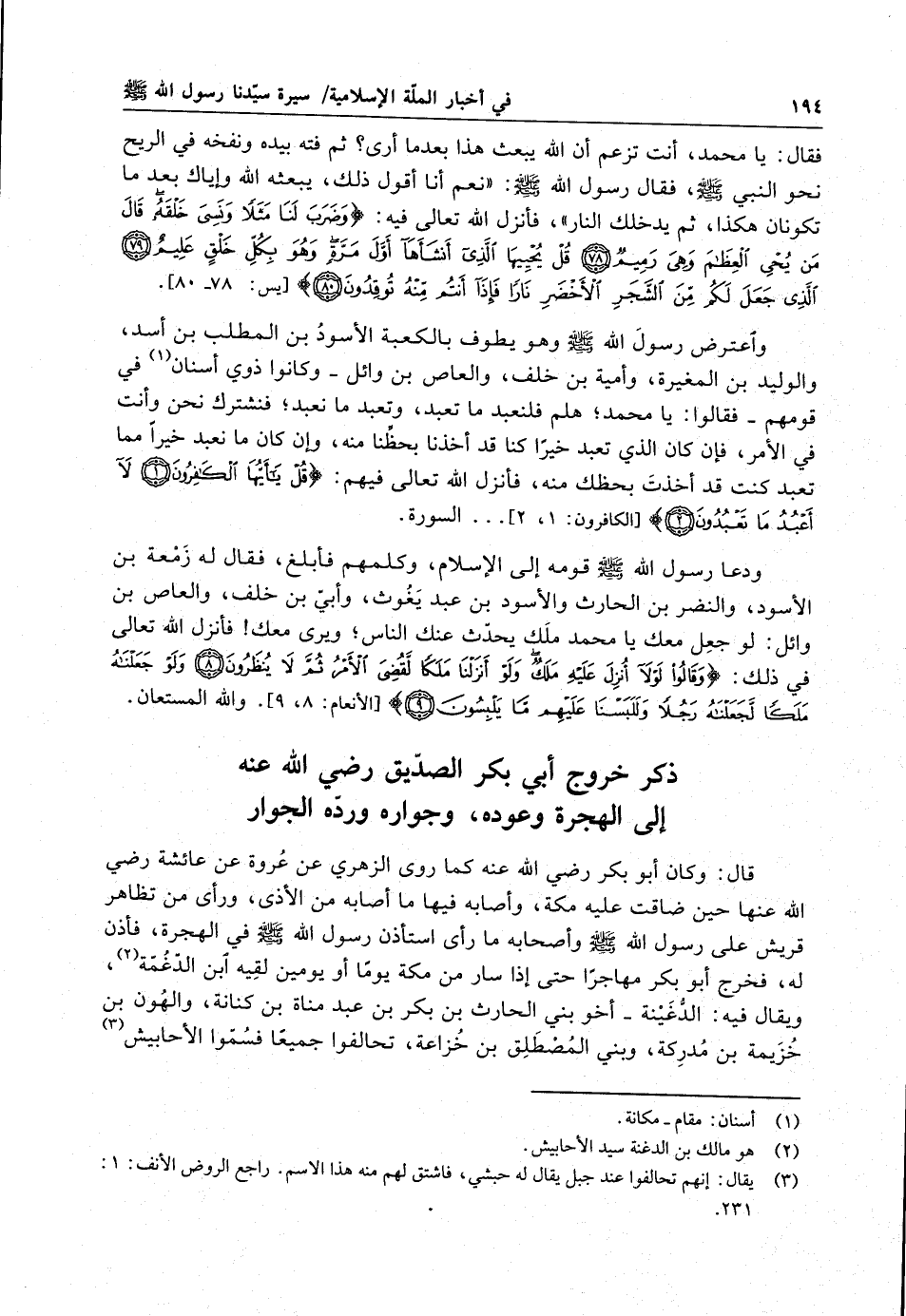 ذكر خروج أبي بكر الصديق رضي الله عنه إلى الهجرة وعوده ، وجواره ورده الجوار