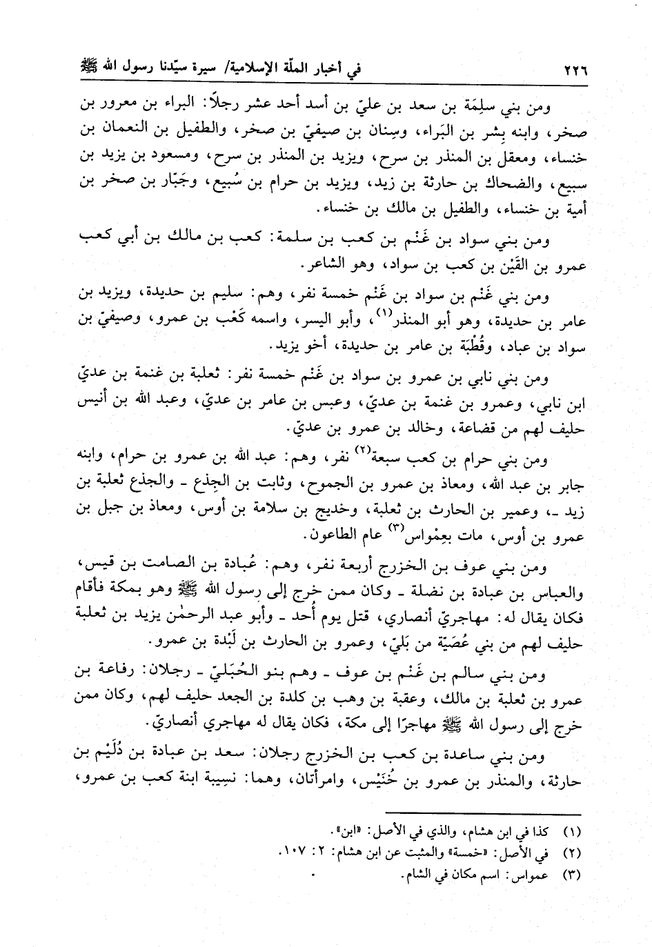 ومن بني سلمة بن سعد بن علي بن أسد أحد عشر رجلاً : البراء بن معرور ابن صخر ، وابنه بشر بن البراء ، وسنا بن صيفي بن صخر ، والطفيل بن النعما ابن خنساء ، ومعقل بن المنذر بن سرح ، ويزيد بن المنذر بن سرح ، ومسعود ابن يزيد بن سبيع ، والضحاك بن حارثة بن زيد ، ويزيد بن حرام بن سبيع ، وجبار ابن صخر بن امية بن خنساء ، والطفيل بن مالك بن خنساء .