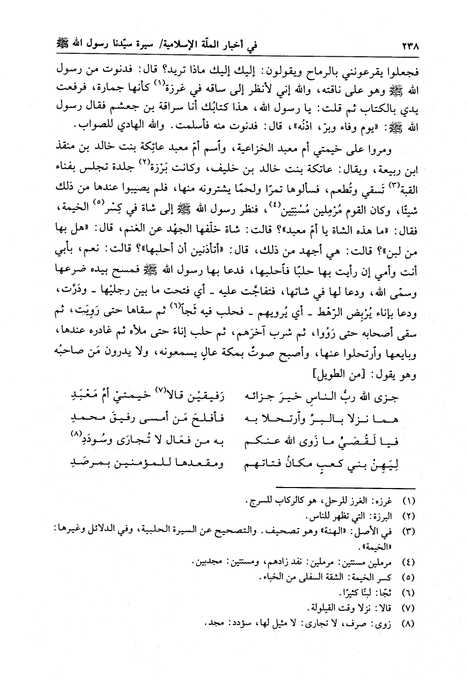 جزى الله ربّ الناس خير جزائه . . . رفيقين قالا خيمتي أمّ معبد