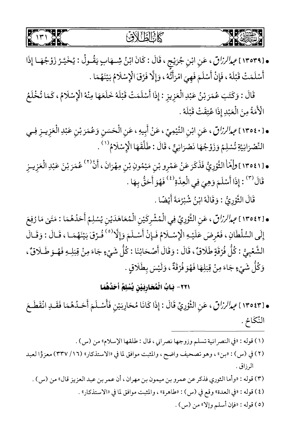 • [١٣٥٤٣] عبد الرزاق، عَنِ الثَّوْرِيِّ قَالَ: إِذَا كَانَا مُحَارِبَيْنِ فَأَسْلَمَ أَحَدُهُمَا فَقَدِ انْقَطَعَ النِّكَاحُ.