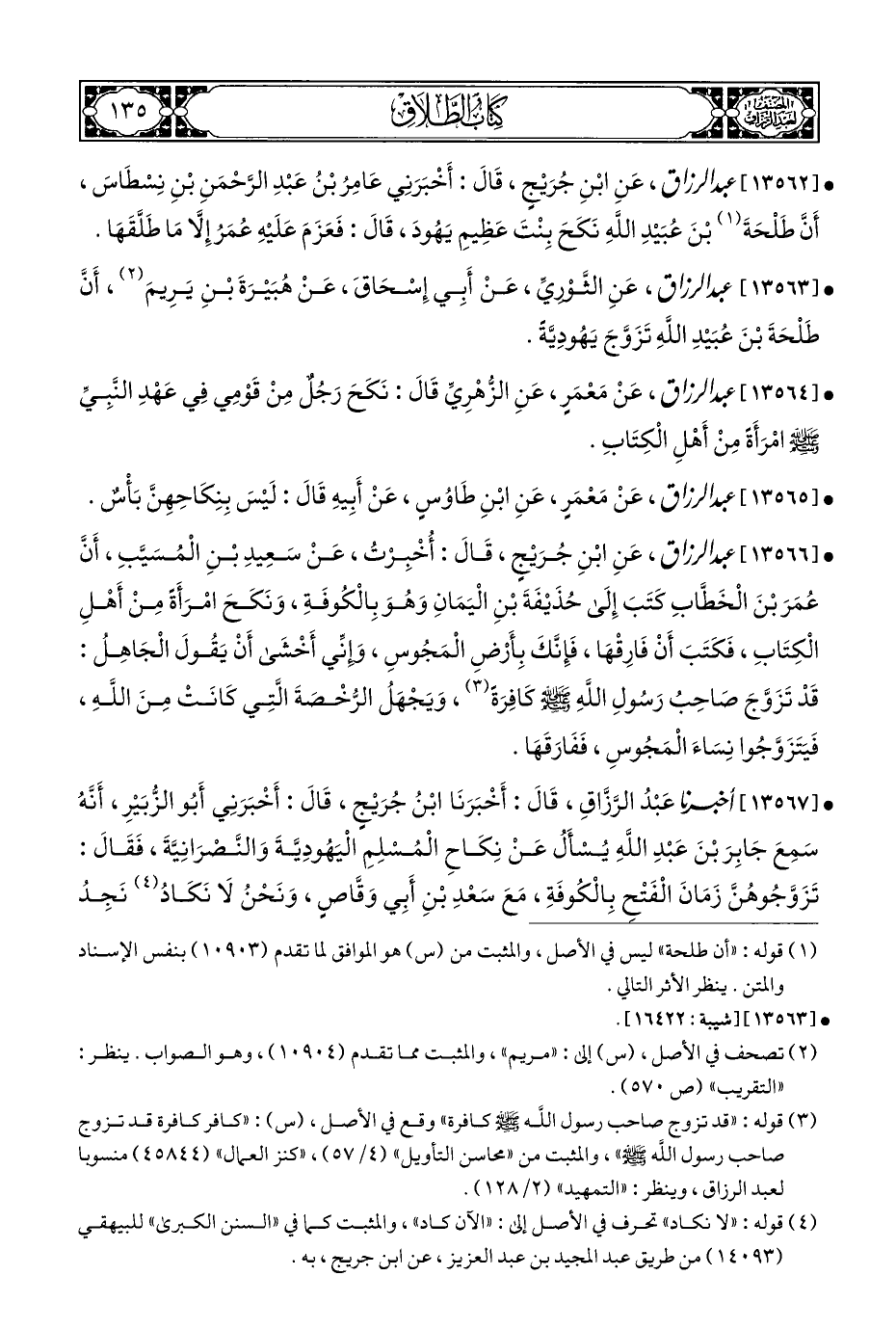 • [١٣٥٦٢] عبد الرزاق، عَنِ ابْنِ جُرَيْجٍ، قَالَ: أَخْبَرَنِي عَامِرُ بْنُ عَبْدِ الرَّحْمَنِ بْنِ نِسْطَاسَ، أَنَّ طَلْحَةَ (¬١) بْنَ عُبَيْدِ اللَّهِ نَكَحَ بِنْتَ عَظِيمِ يَهُودَ، قَالَ: فَعَزَمَ عَلَيْهِ عُمَرُ إِلَّا مَا طَلَّقَهَا.