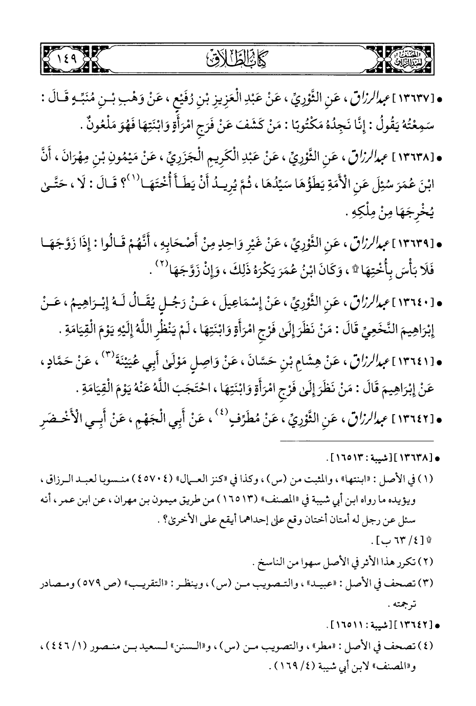 • [١٣٦٤٢] عبد الرزاق، عَنِ الثَّوْرِيِّ، عَنْ مُطرِّفٍ (¬٤)، عَنْ أَبِي الْجَهْمِ، عَنْ أَبِي الْأَخْضَرِ