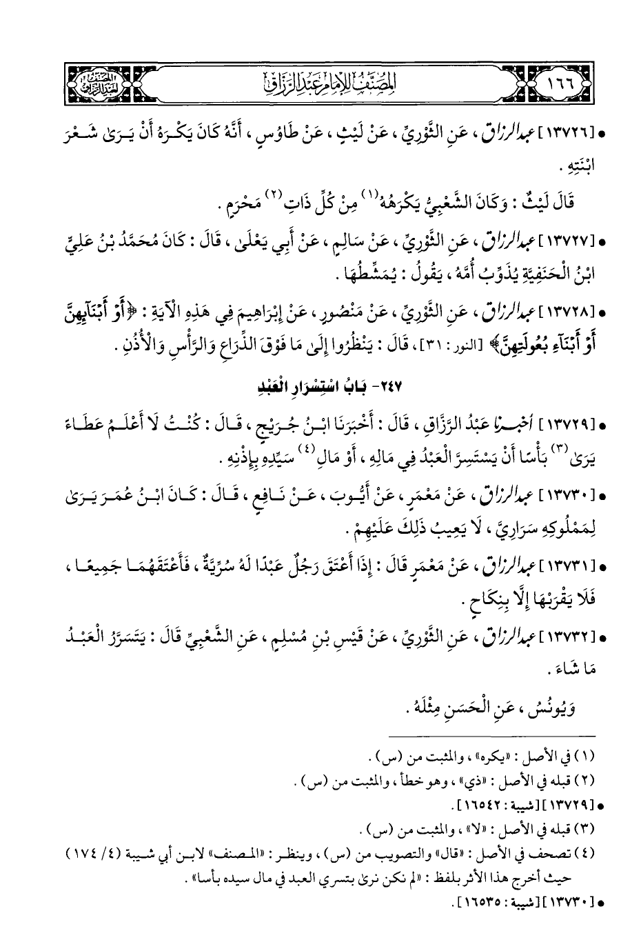 • [١٣٧٣٢] عبد الرزاق، عَنِ الثَّوْريِّ، عَنْ قَيْسِ بْنِ مُسْلِمٍ، عَنِ الشَّعْبِيِّ قَالَ: يَتَسَرَّرُ الْعَبْدُ مَا شَاءَ.