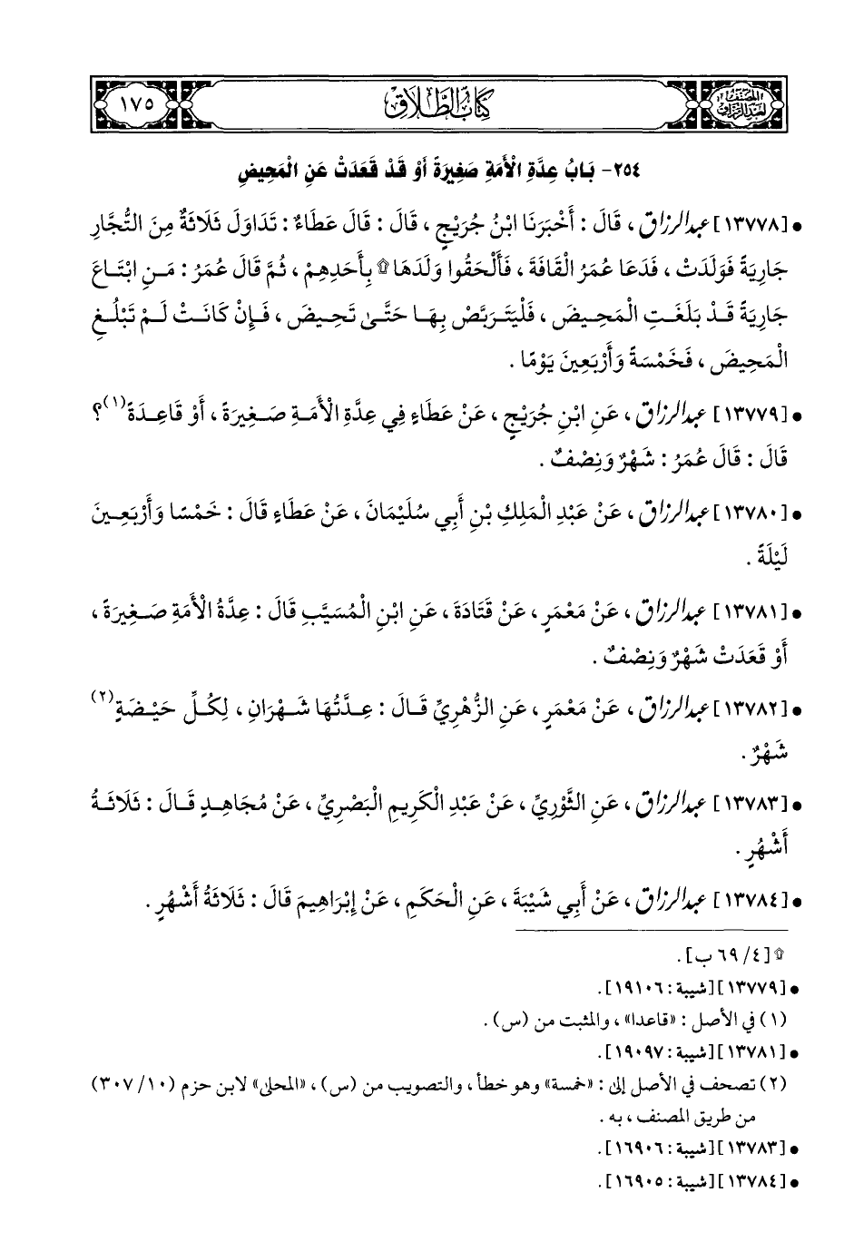 • [١٣٧٨٢] عبد الرزاق، عَنْ مَعْمَرٍ، عَنِ الزُّهْرِيِّ قَالَ: عِدَّتُهَا شَهْرَانِ، لِكُلِّ حَيْضَةٍ (¬٢) شَهْرٌ.