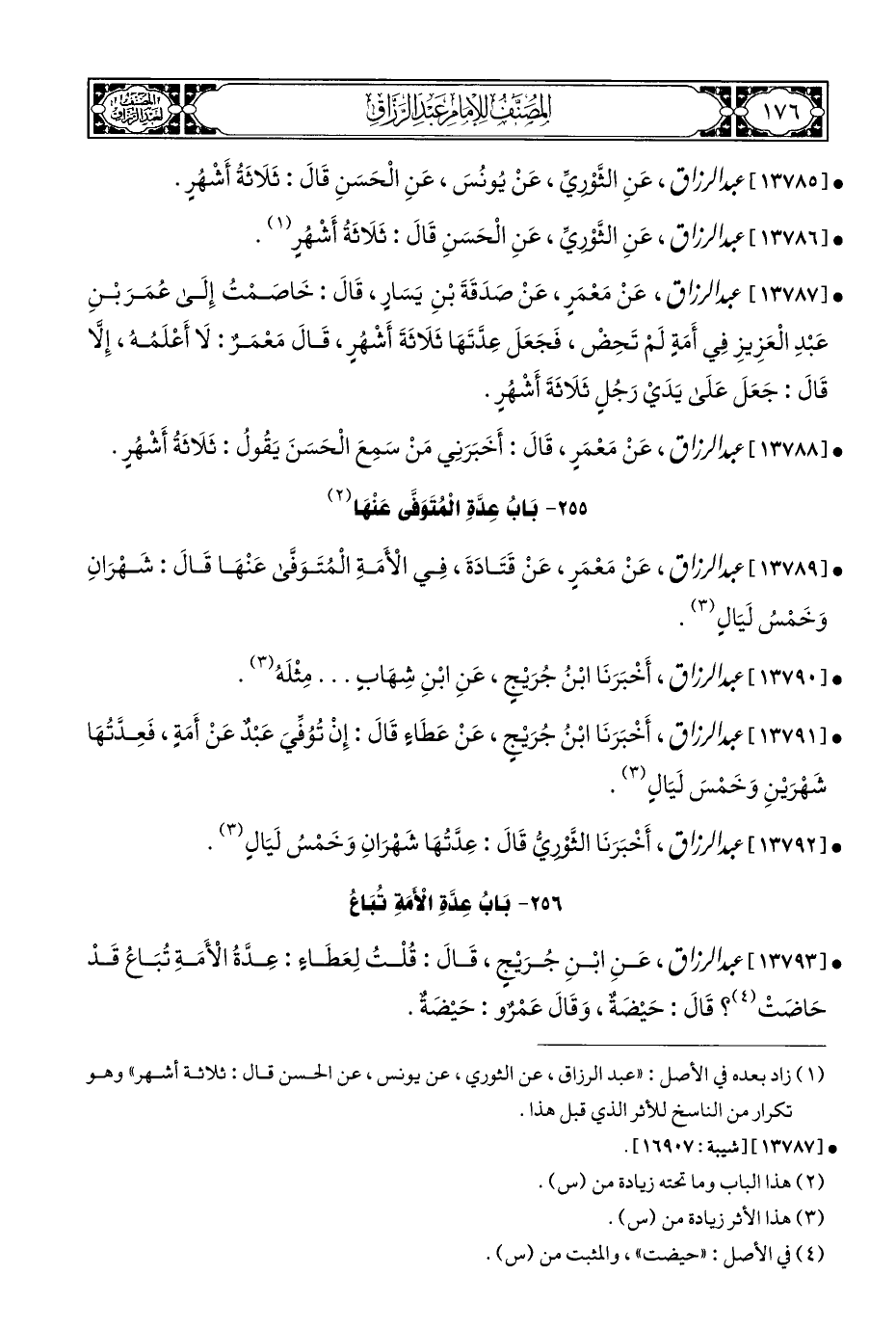 (¬١) زاد بعده في الأصل: "عبد الرزاق، عن الثوري، عن يونس، عن الحسن قال: ثلاثة أشهر" وهو تكرار من الناسخ للأثر الذي قبل هذا.