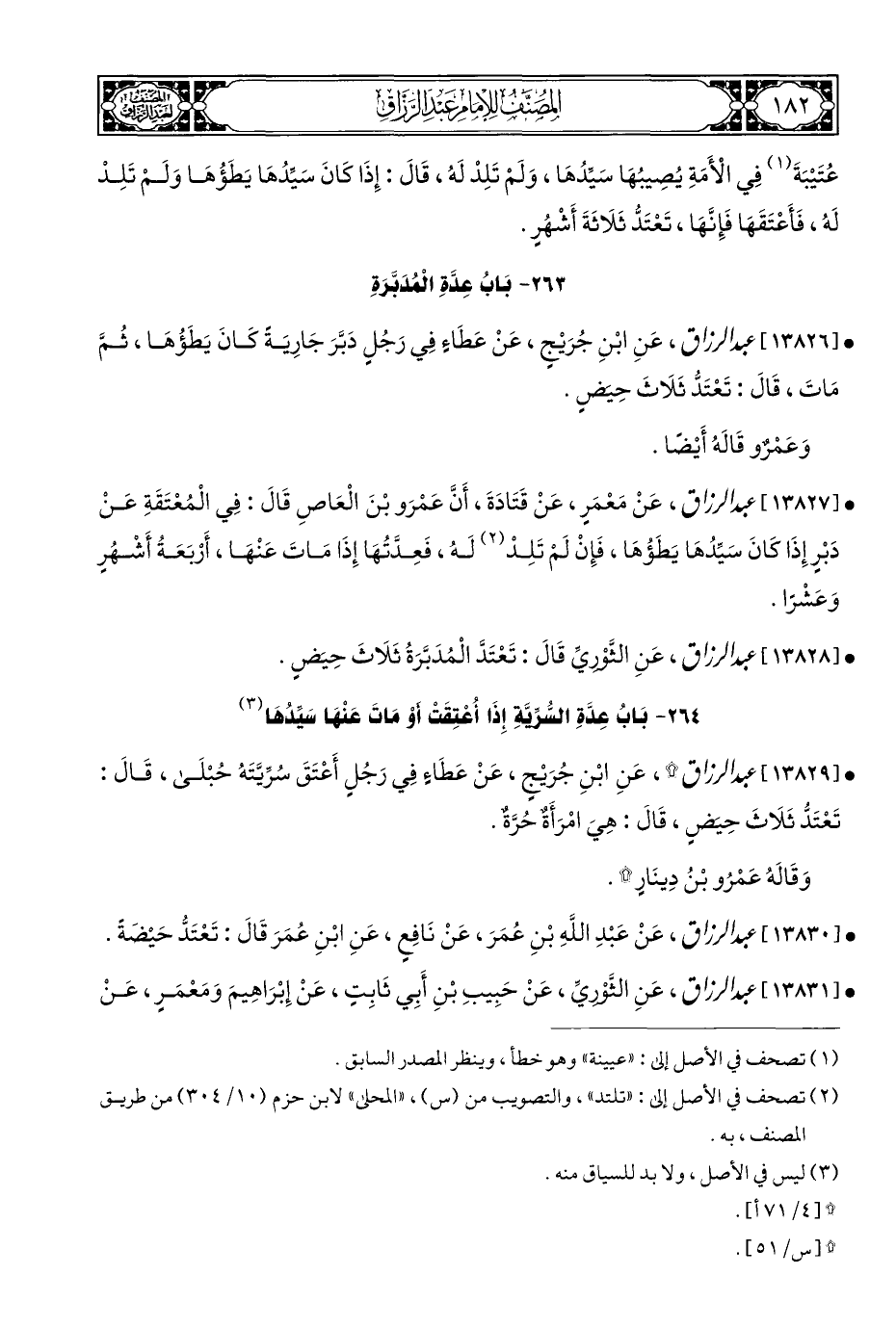 • [١٣٨٢٧] عبد الرزاق، عَنْ مَعْمَر، عَنْ قَتَادَةَ، أَنَّ عَمْرَو بْنَ الْعَاصِ قَالَ: فِي الْمُعْتَقَةِ عَنْ دَبْرٍ إِذَا كَانَ سَيِّدُهَا يَطَؤُهَا، فَإِنْ لَمْ تَلِدْ (¬٢) لَهُ، فَعِدَّتُهَا إِذَا مَاتَ عَنْهَا، أَرْبَعَةُ أَشْهُرٍ وَعَشْرًا.