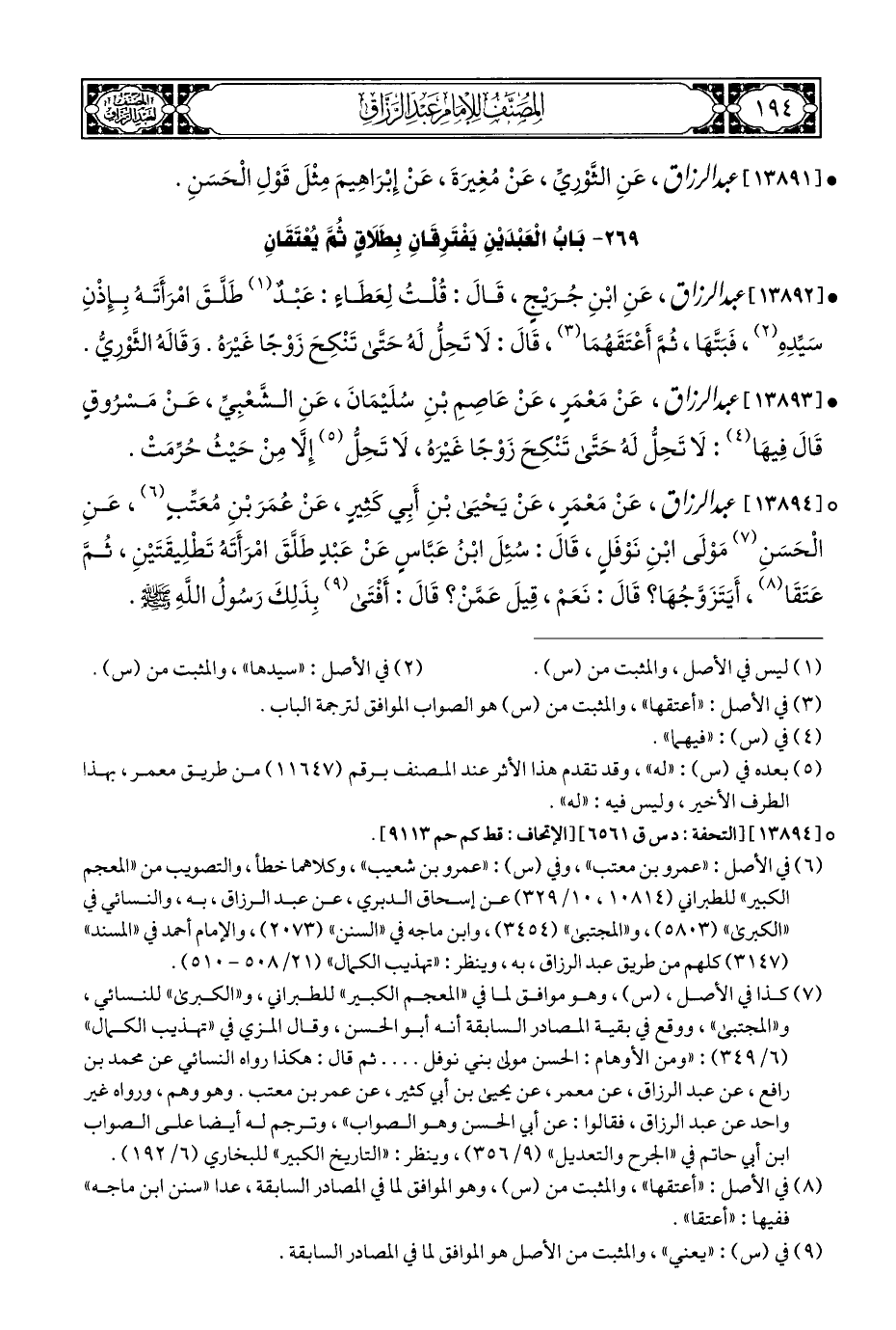 ٢٦٩ - بَابُ الْعَبْدَيْنِ يَفْتَرِقَانِ بِطَلَاقٍ ثُمَّ يُعْتَقَانِ