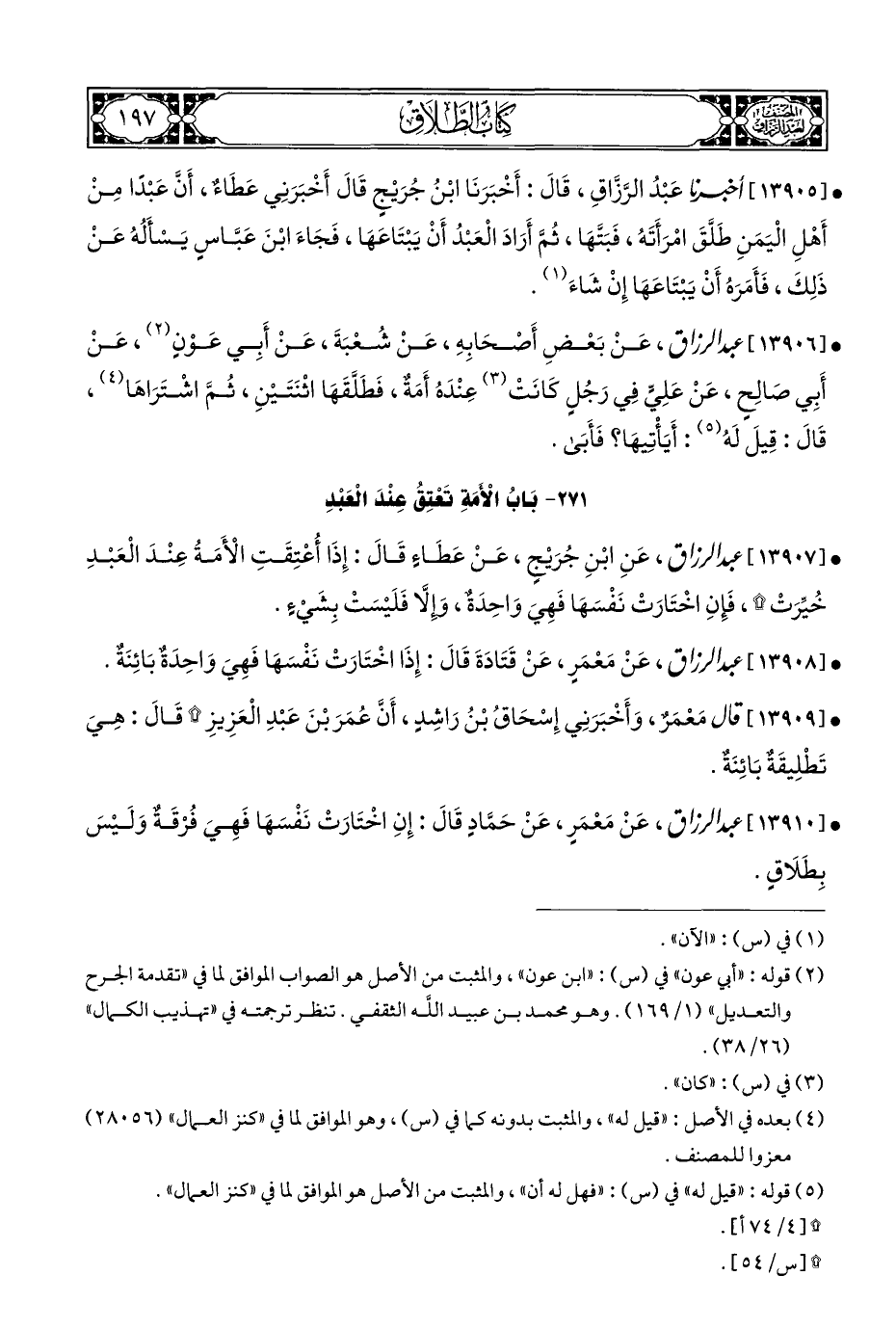 • [١٣٩٠٧] عبد الرزاق، عَنِ ابْنِ جُرَيْجٍ، عَنْ عَطَاءٍ قَالَ: إِذَا أُعْتِقَتِ الْأَمَةُ عِنْدَ الْعَبْدِ خُيِّرَتْ *، فَإِنِ اخْتَارَتْ نَفْسَهَا فَهِيَ وَاحِدَةٌ، وإِلَّا فَلَيْسَتْ بِشَيءٍ.
