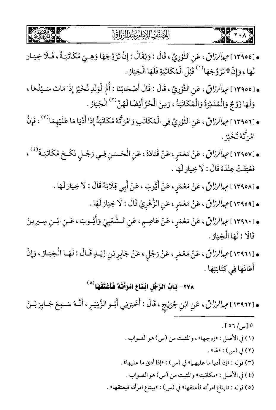 (¬٥) قوله: "ابتاع امرأته فأعتقها" في (س): "يبتاع امرأته فيعتقها".