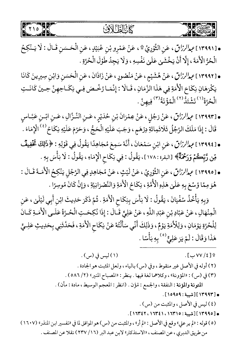 • [١٣٩٩٣] عبد الرزاق، عَنْ رَجُلٍ، عَنْ عِمْرَانَ بْنِ حُدَيْرٍ، عَنِ النَّزَّالِ، عَنِ ابْنِ عَبَّاسٍ قَالَ: إِذَا مَلَكَ الرَّجُلُ ثَلَاثَمِائَةِ دِرْهَمٍ، وَجَبَ عَلَيْهِ الْحَجُّ، وَحَرُمَ عَلَيْهِ نِكَاحُ (¬٤) الْإِمَاءُ.
