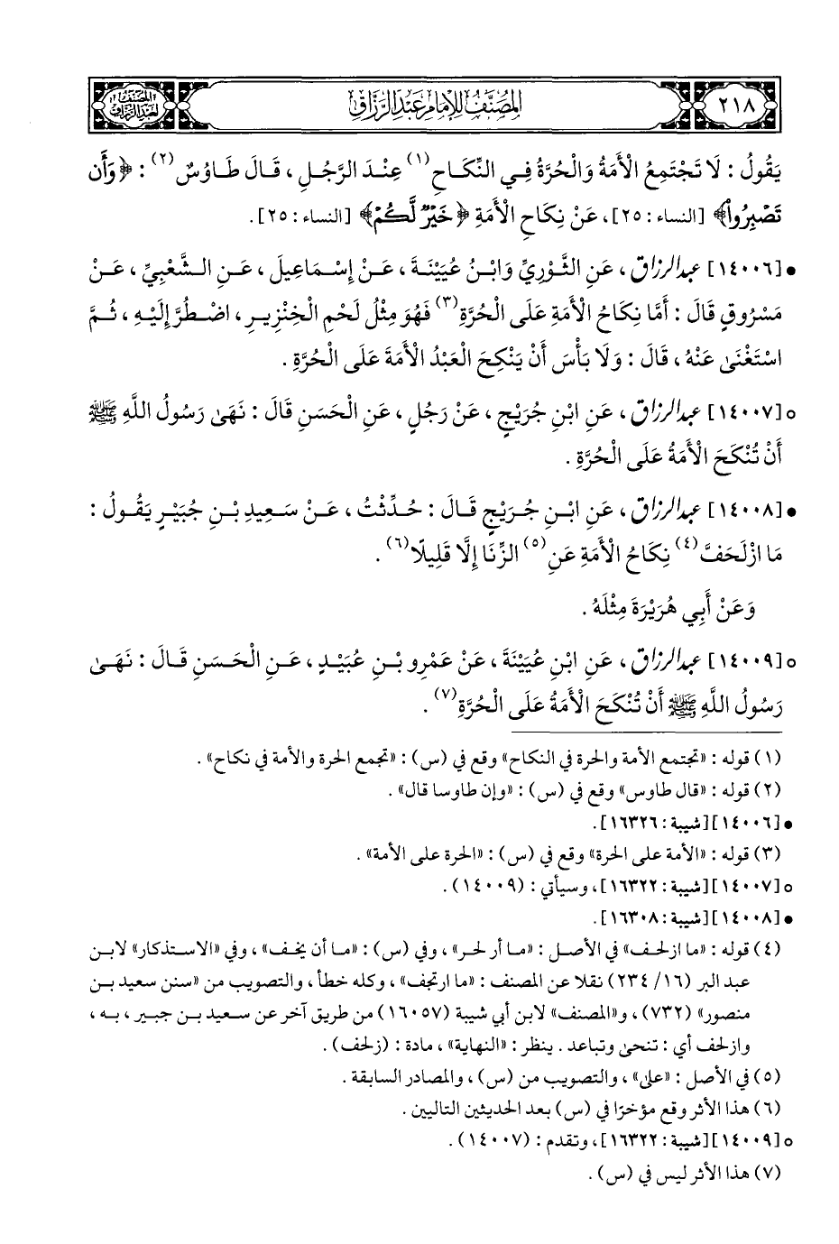 ° [١٤٠٠٧] عبد الرزاق، عَنِ ابْنِ جُرَيْجٍ، عَنْ رَجُلٍ، عَنِ الْحَسَنِ قَالَ: نَهَى رَسُولُ اللهِ - صلى الله عليه وسلم - أَنْ تُنْكَحَ الْأَمَةُ عَلَى الْحُرَّةِ.