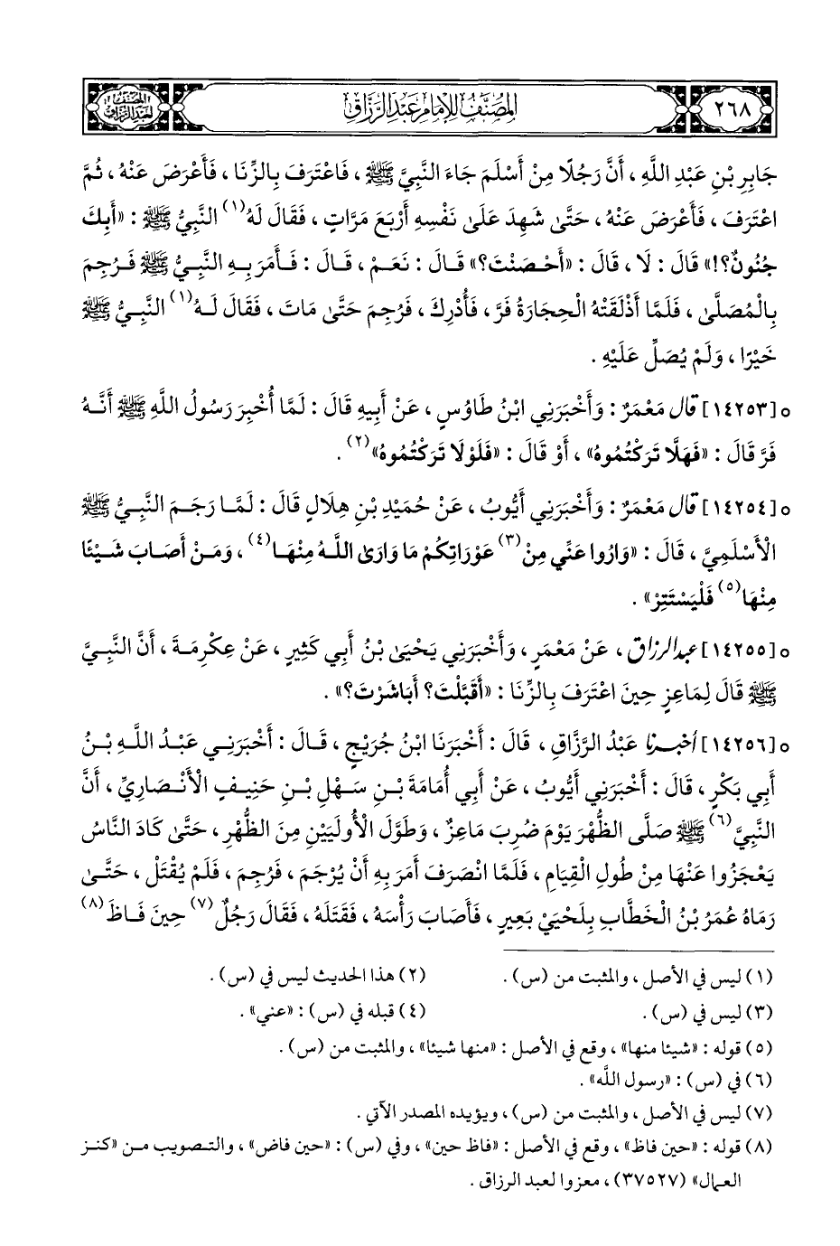 ° [١٤٢٥٥] عبد الرزاق، عَنْ مَعْمَرٍ، وَأَخبَرَنِي يَحْيَى بْنُ أَبِي كَثِيرٍ، عَنْ عِكْرِمَةَ، أَنَّ النَّبِيَّ - صلى الله عليه وسلم - قَالَ لِمَاعَزٍ حِينَ اعْتَرَفَ بِالزِّنَا: "أَقَبَّلْتَ؟ أَبَاشَرْتَ؟ ".