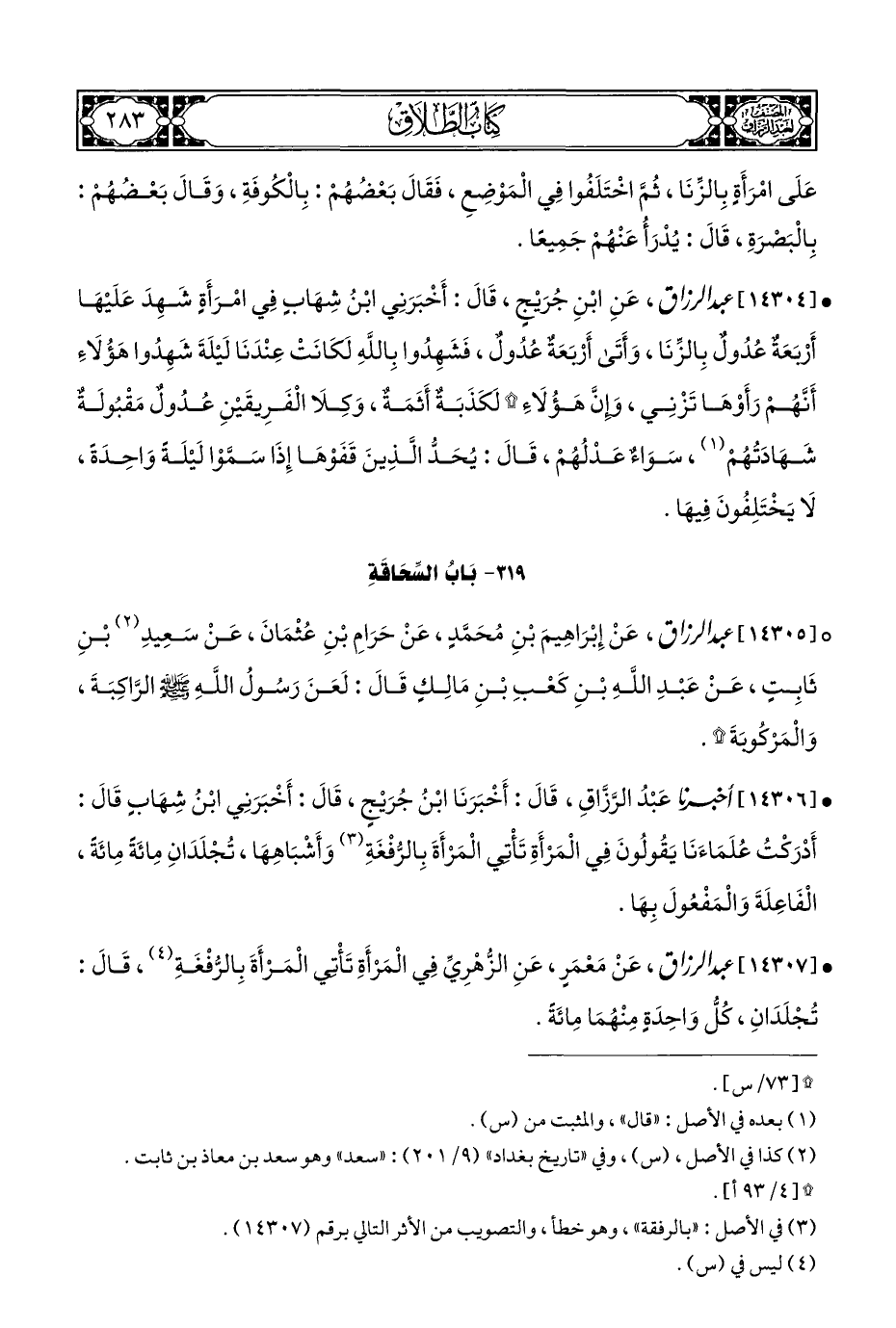 ٣١٩ - بَابُ السِّحَاقَةِ