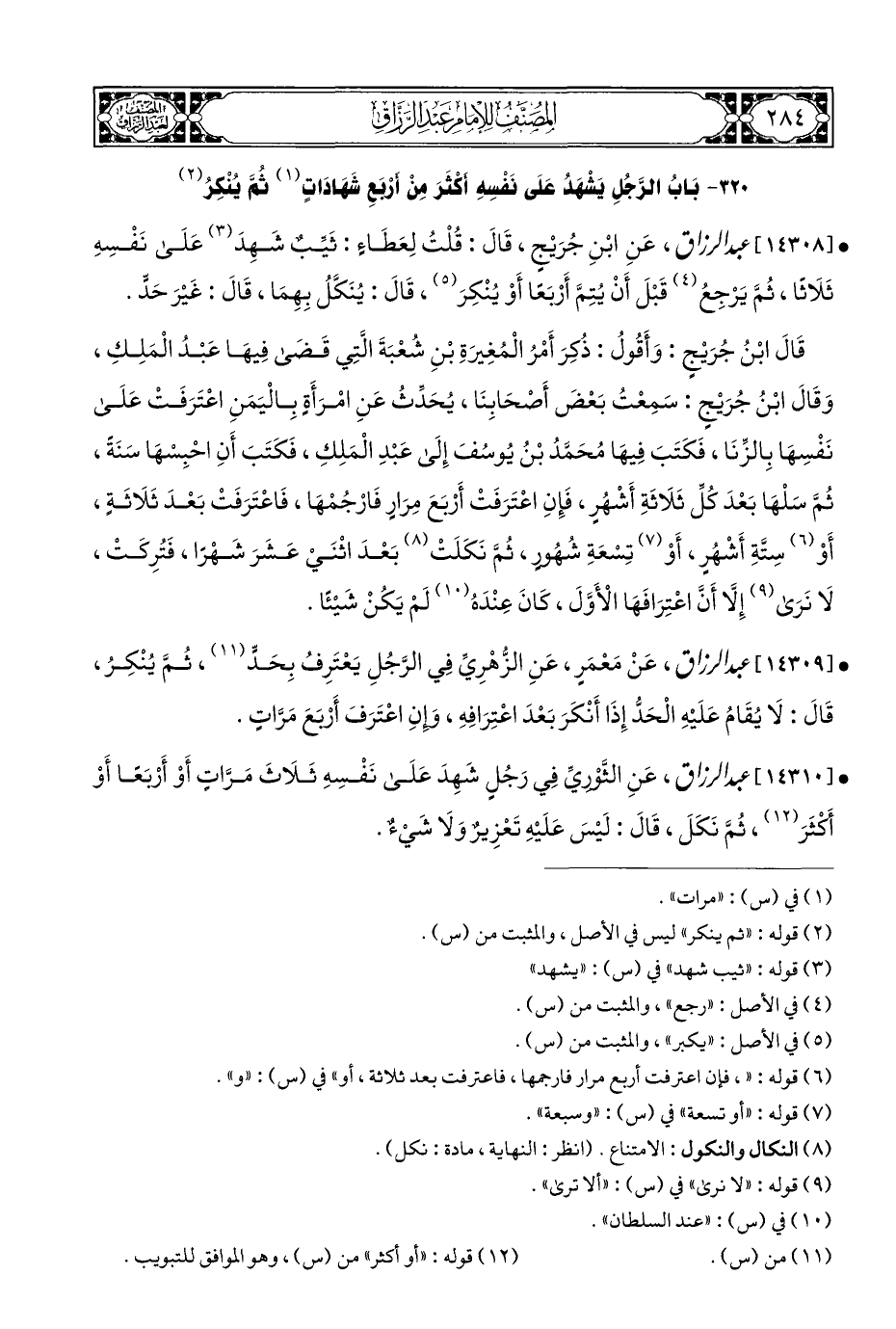 ٣٢٠ - بَابُ الرَّجُلِ يَشْهَدُ عَلَى نَفْسِهِ أكْثَرَ مِنْ أرْبَعِ شَهَادَاتٍ (¬١) ثُمَّ يُنْكِرُ (¬٢)
