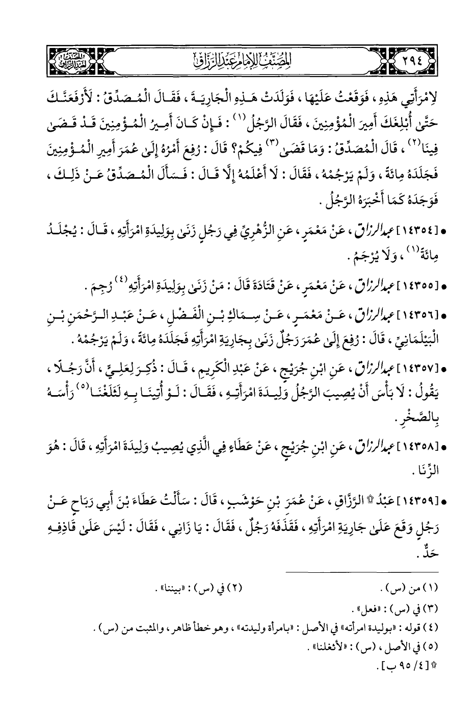 • [١٤٣٥٦] عبد الرزاق، عَنْ مَعْمَرٍ، عَنْ سِمَاكِ بْنِ الْفَضْلِ، عَنْ عَبْدِ الرَّحْمَنِ بْنِ الْبَيْلَمَانِيِّ، قَالَ: رُفِعَ إِلَى عُمَرَ رَجُلٌ زَنَى بِجَارِيَةِ امْرَأَتِهِ فَجَلَدَهُ مِائَةً، وَلَمْ يَرْجُمْهُ.