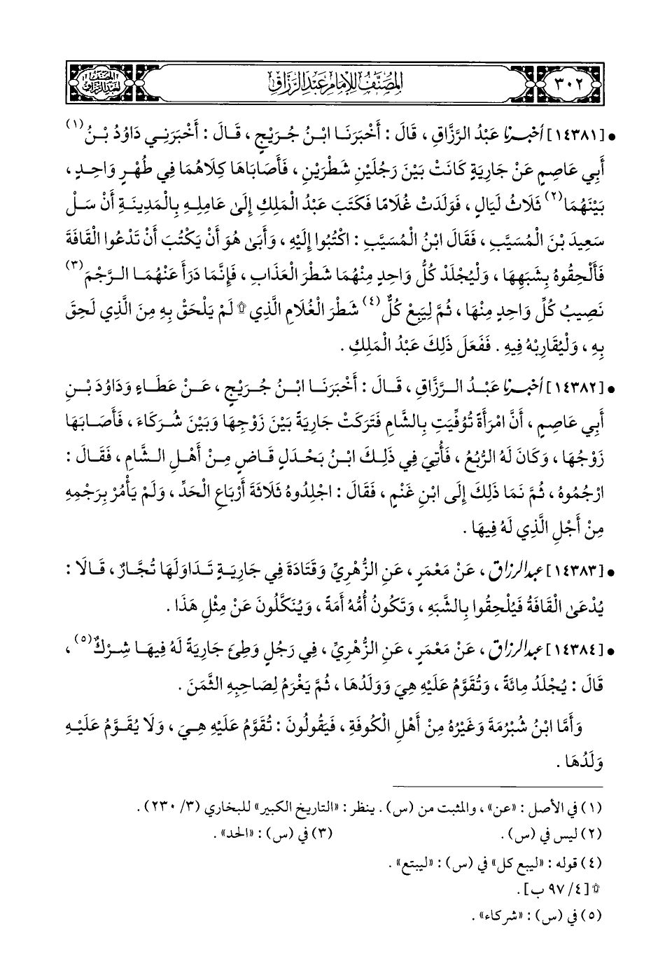• [١٤٣٨٤] عبد الرزاق، عَنْ مَعْمَرٍ، عَنِ الزُّهْرِيِّ، فِي رَجُلٍ وَطِئَ جَارِيَةً لَهُ فِيهَا شِرْكٌ (¬٥)، قَالَ: يُجْلَدُ مِائَةً، وَتُقَوَّمُ عَلَيْهِ هِيَ وَوَلَدُهَا، ثُمَّ يَغْرَمُ لِصَاحِبِهِ الثَّمَنَ.