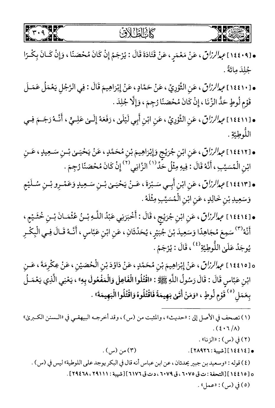 (¬٤) قوله: "وسعيد بن جبير يحدثان، عن ابن عباس أنه قال في البكر يوجد على اللوطية" ليس في (س).
