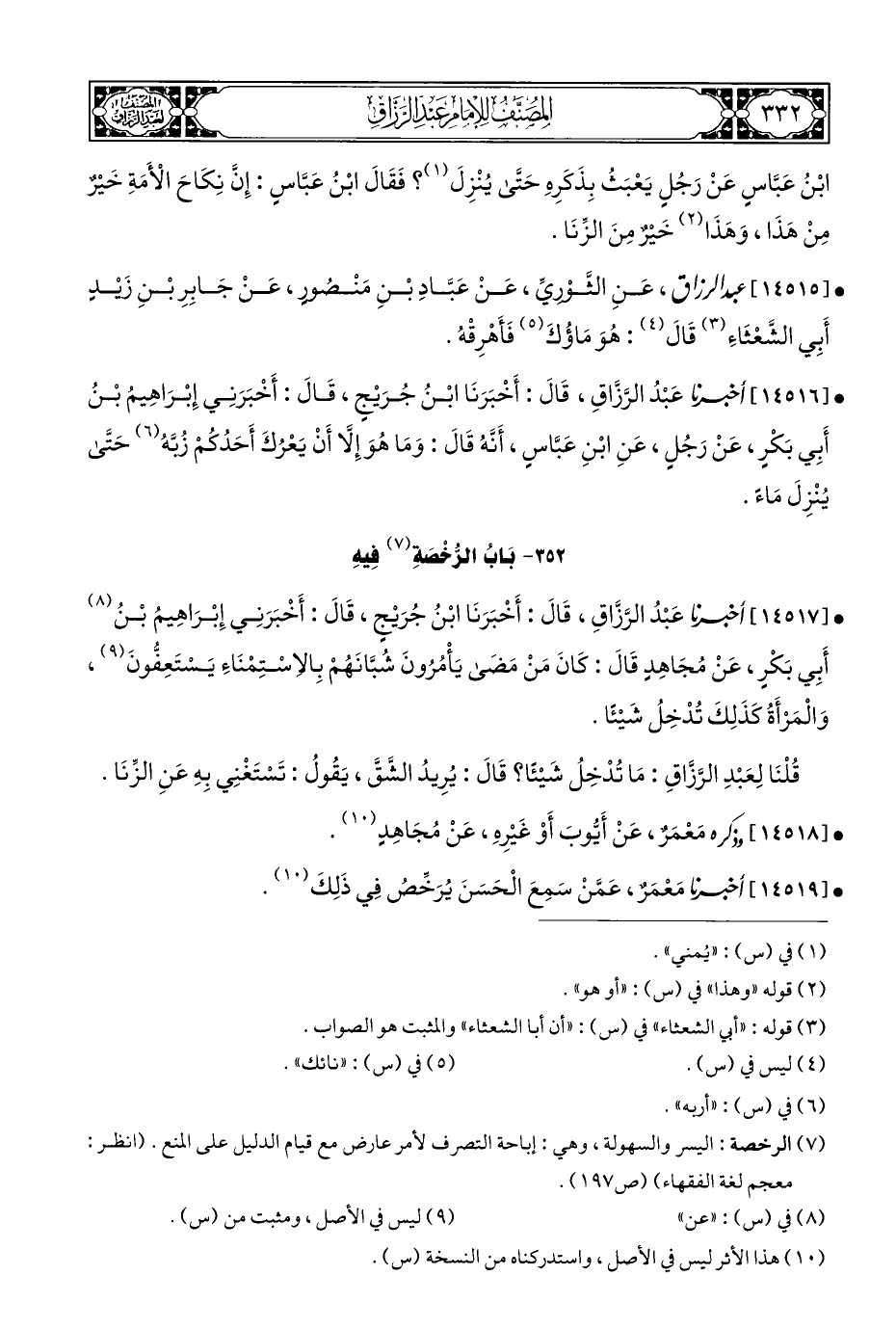 • [١٤٥١٩] أخبرنا مَعْمَرٌ، عَمَّنْ سَمِعَ الْحَسَنَ يُرَخِّصُ فِي ذَلِكَ (¬١٠).