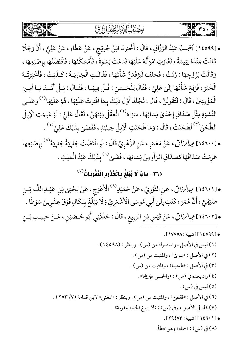 ٣٦٥ - بَابٌ لا يُبْلَغُ بِالْحُدُودِ الْعُقُوبَاتُ (¬٧)