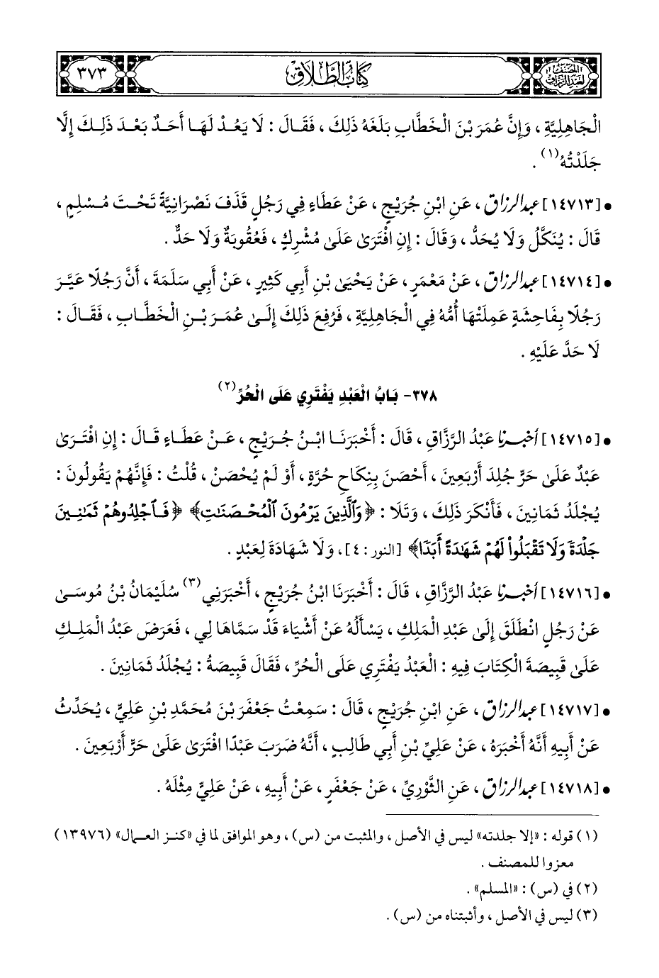 ٣٧٨ - بَابُ الْعَبْدِ يَفْتَرِي عَلَى الْحُرِّ (¬٢)