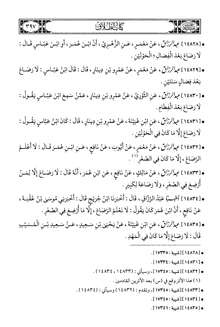 كتاب مصنف عبد الرزاق - ط التأصيل الثانية (اسم الجزء: 7)