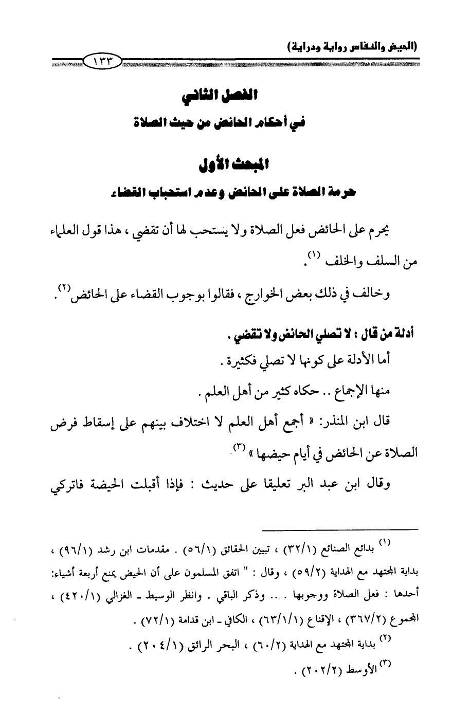 الفصل الثاني: في أحكام الحائض من حيث الصلاة